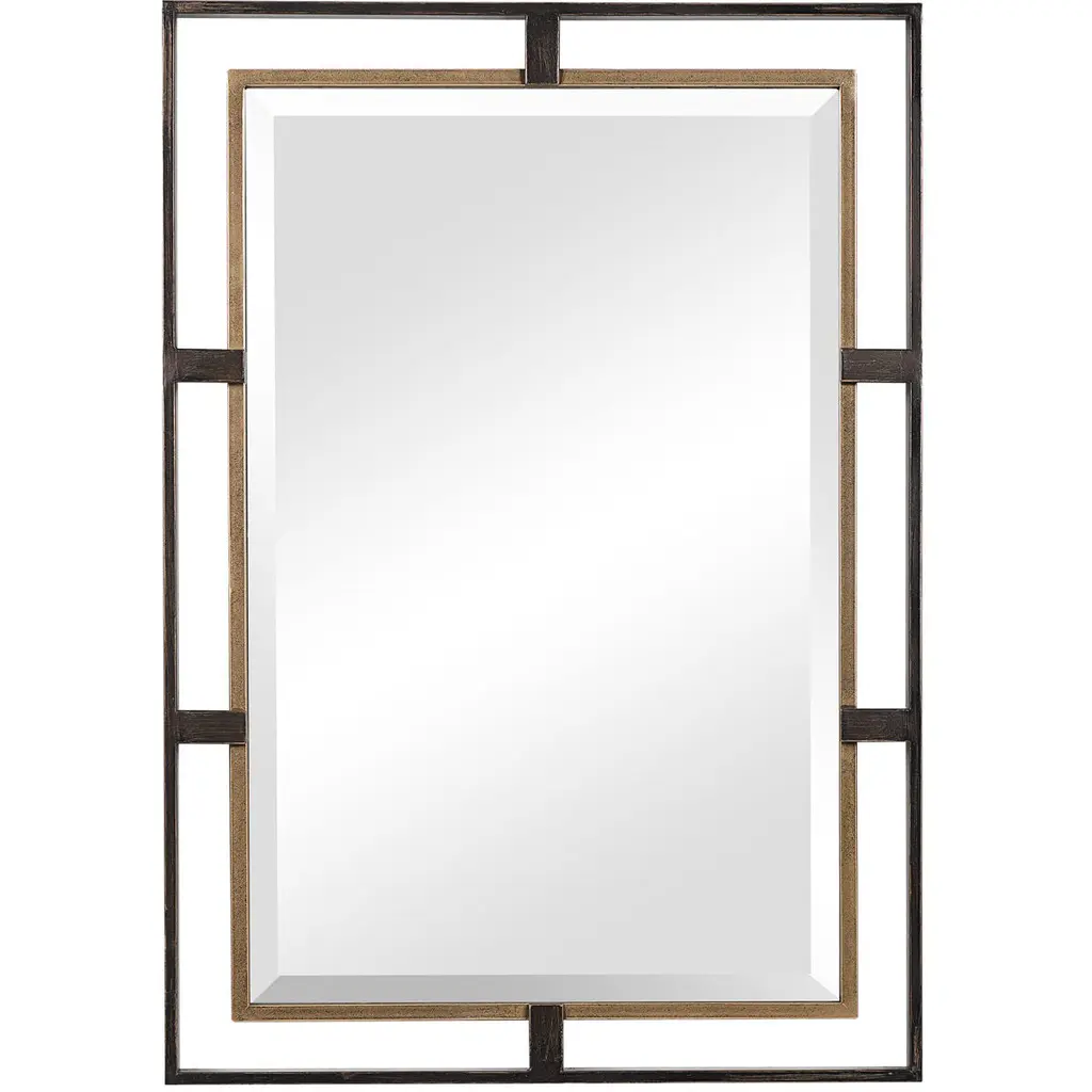 The Carrizo Rectangle Wall Mirror from Uttermost extends Grace Feyock's exploration of layered design principles. Strategic overlapping of frame elements produces intentional shadow lines that shift throughout the day. The combination of metal finishes adds visual interest while maintaining compositional balance. Its adaptable mounting options allow for varied interpretations of the frame's rhythmic elements. The beveled mirror edge reinforces the design's emphasis on subtle dimensional play.
