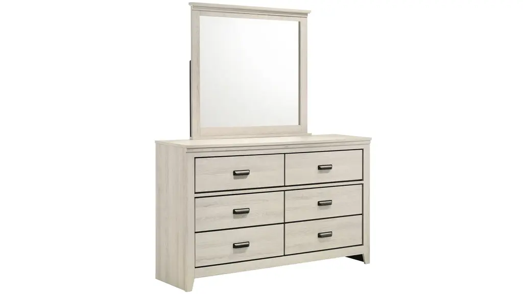 The Carter Mirror marries rustic appeal with contemporary lines, offering a cozy yet refined aesthetic to any modern home. The distressed wood finish is complemented adding an industrial touch to the ensemble.