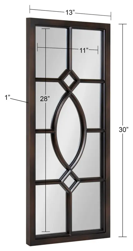 Lovely and stylish, this windowpane mirror adds a boost to any living space. This sophisticated mirror carries a contemporary but timeless aesthetic. This wall accent mirror is lightweight and comes with metal d-ring hangers attached to the back for easy wall mounting. This mirror can be installed either horizontally and vertically. Horizontal placement is ideal for above a sofa, over a mantle, or any wide and spacious rooms that need more adornments to brighten plain walls. In entryways, hallways, or narrow rooms with high walls, the vertical placement may be more suitable. You can also combine two or three mirrors vertically or horizontally to create a stunning reflective window wall. The display dimensions of a single mirror are 13 inches by 30 inches by 1 inch deep. Give your living spaces a visual makeover with this beautiful windowpane mirror. Transform an ordinary room into a gorgeous, illuminated space by combining two or more and strategically displaying them together or apart.• WINDOWPANE MIRROR: Decorative framed windowpane mirror will bring a casual modern style to your home• PURCHASE IN MULTIPLES: This accent mirror is lovely on its own or combine multiples to create a beautiful statement wall• OVERSIZED ACCENT MIRROR: The charming trellis design is lovely to look at and creates added interest. The overall display dimensions are 13 inches by 30 inches by 1 inch deep• EASY TO HANG: The D-ring hangers are all ready attached to the back for easy horizontal or vertical wall display• STURDY FRAME: This accent mirror is constructed of a resilient plastic material that is lighter weight for easy wall hanging