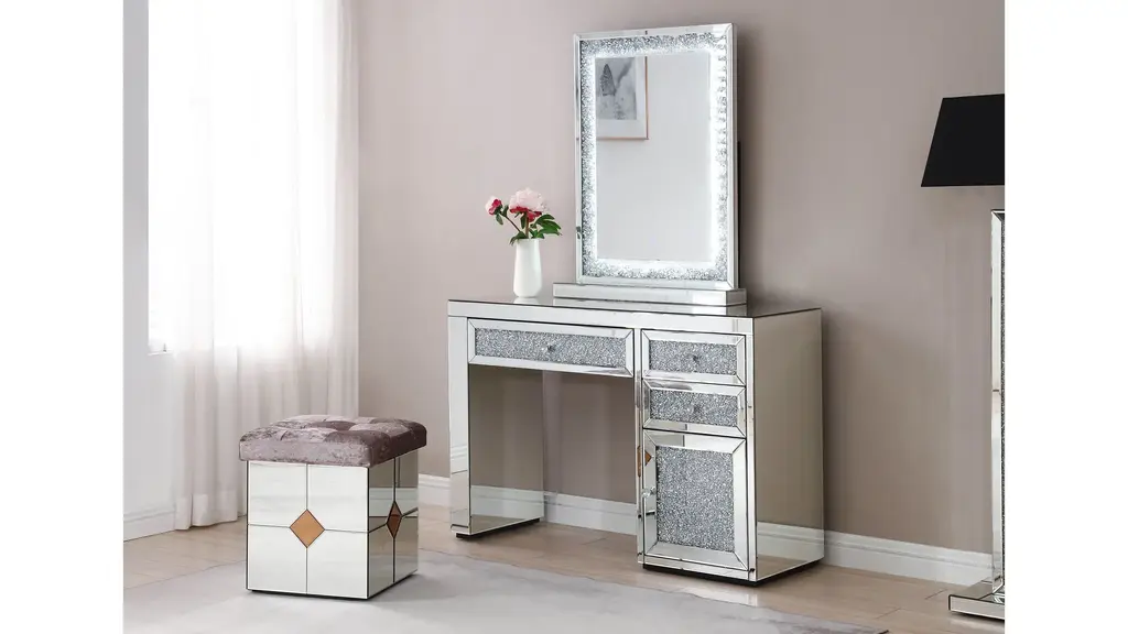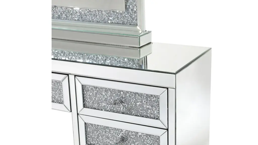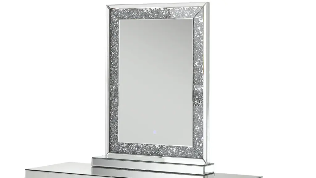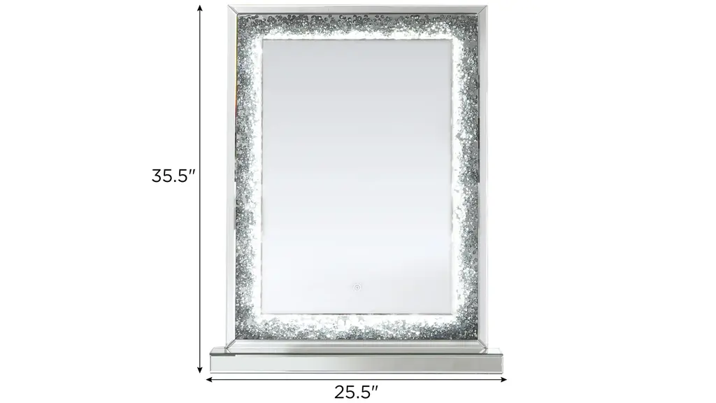 Cassie Vanity Mirror is Bold Vanity Mirror Featuring Beveled Mirror Base and Faux Diamond Inserts on the Mirror Face. Integrated Light Switch on the Mirror Face for Easy Access. Matching Vanity is Available and is Sold Separately