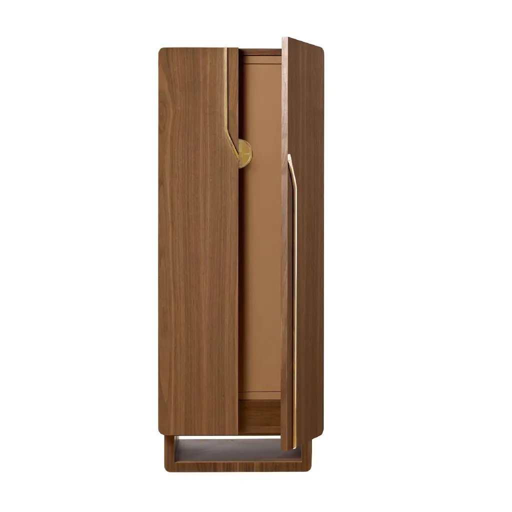 The Casson Open Cupboard in purple amaranth, designed by Daniele della Porta is a stylish and charming unit measuring 170 cm tall. Also available in red, indigo, bright mustard and dark purple, the elegant cupboard features a deluxe mirror attached with solid canaletto walnut elements and a coat rack in solid canaletto walnut.