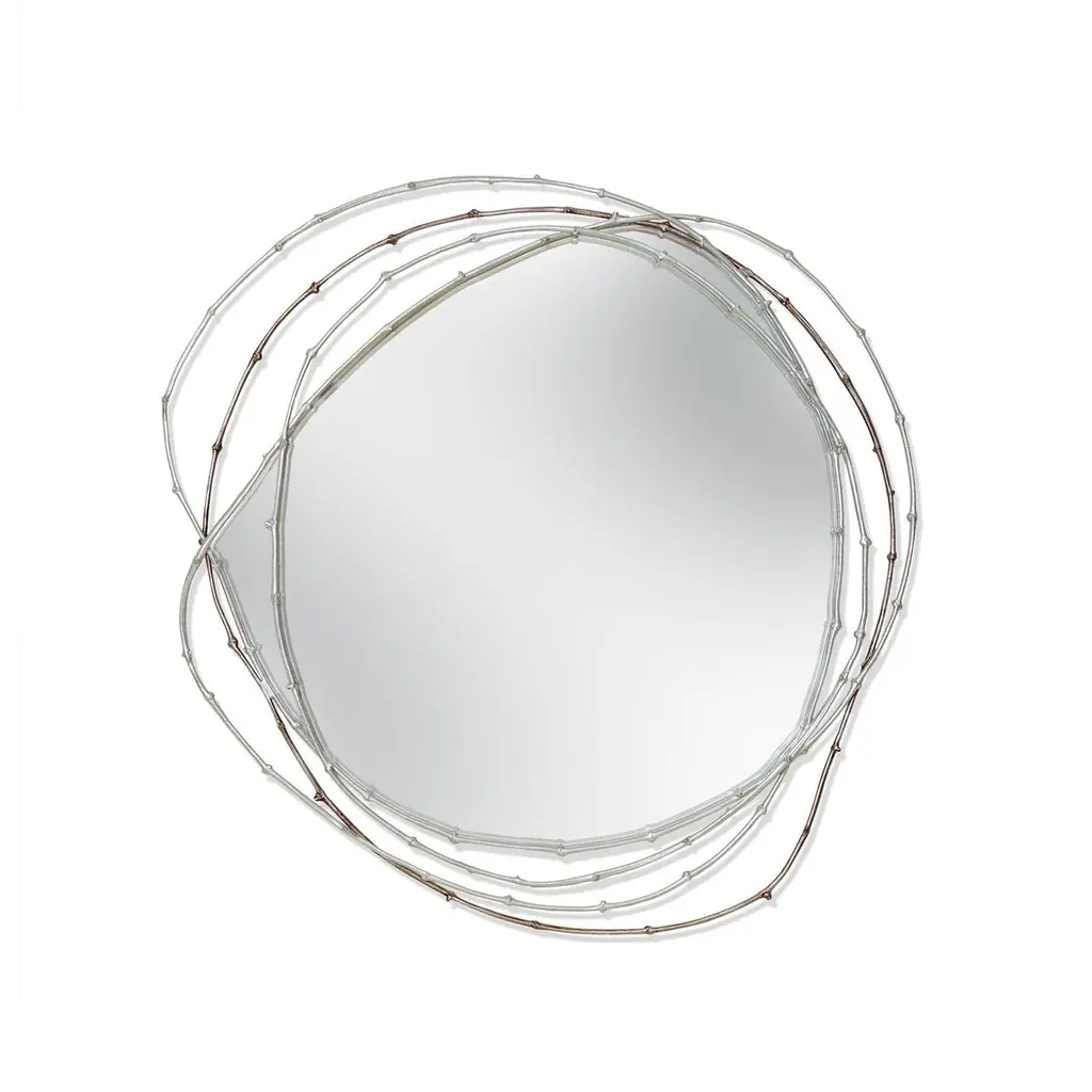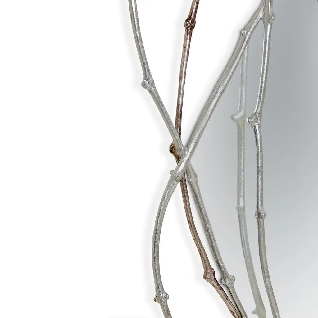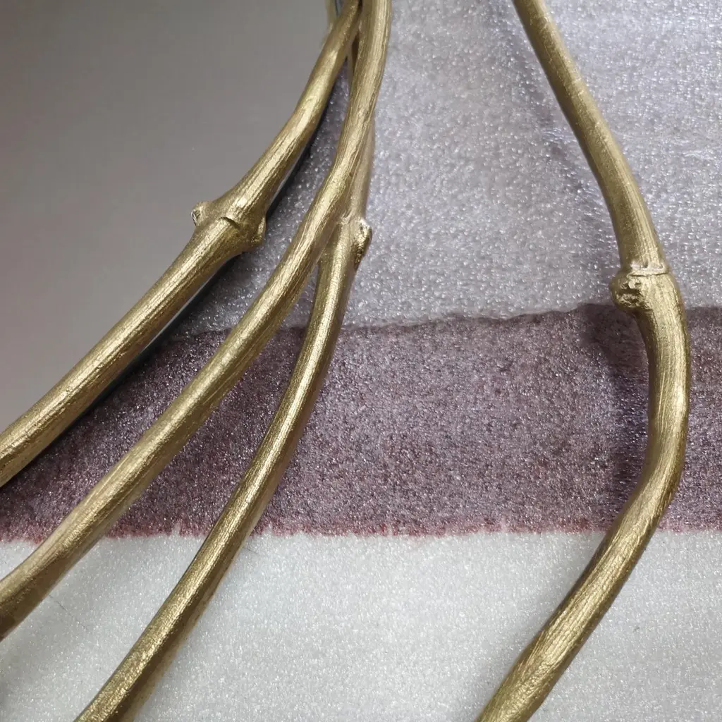 Framing the beholder in a crown of vine branches, this mirror is the ultimate artisanal piece. The three arches that form the frame are handmade from vine branches, molded in brass casting,Frame: Cast brass in Brass, Antique Brass, Silver, Antique Silver, Copper or Antique Copper.Mirror: Clear, Bronze or Smokey finishingSize can be customized to fit your space perfectly.We do our best to expedite production and to ship and deliver product within the listed lead time, however current lead times might be longer due to global shipping backlog and delays. These delays are out of our control and cannot be a reason to cancel an order.