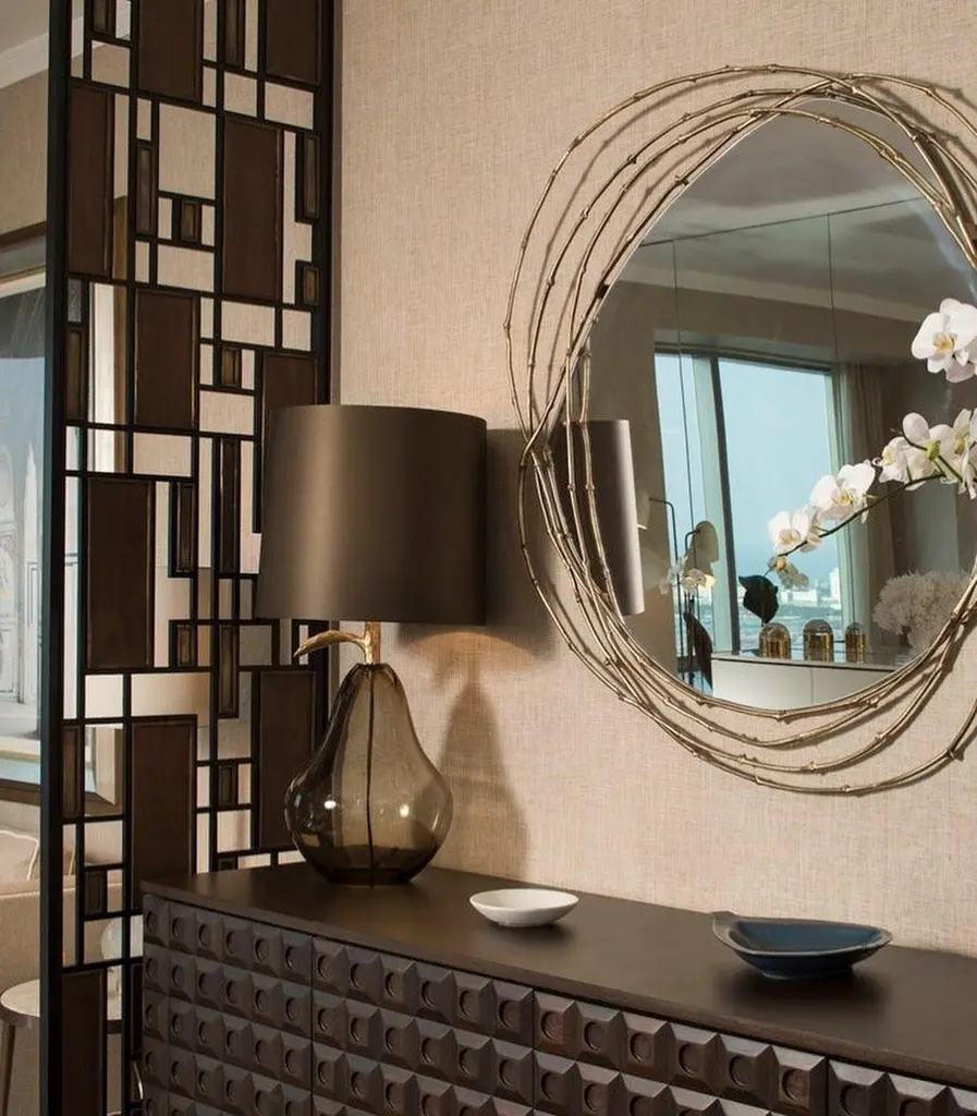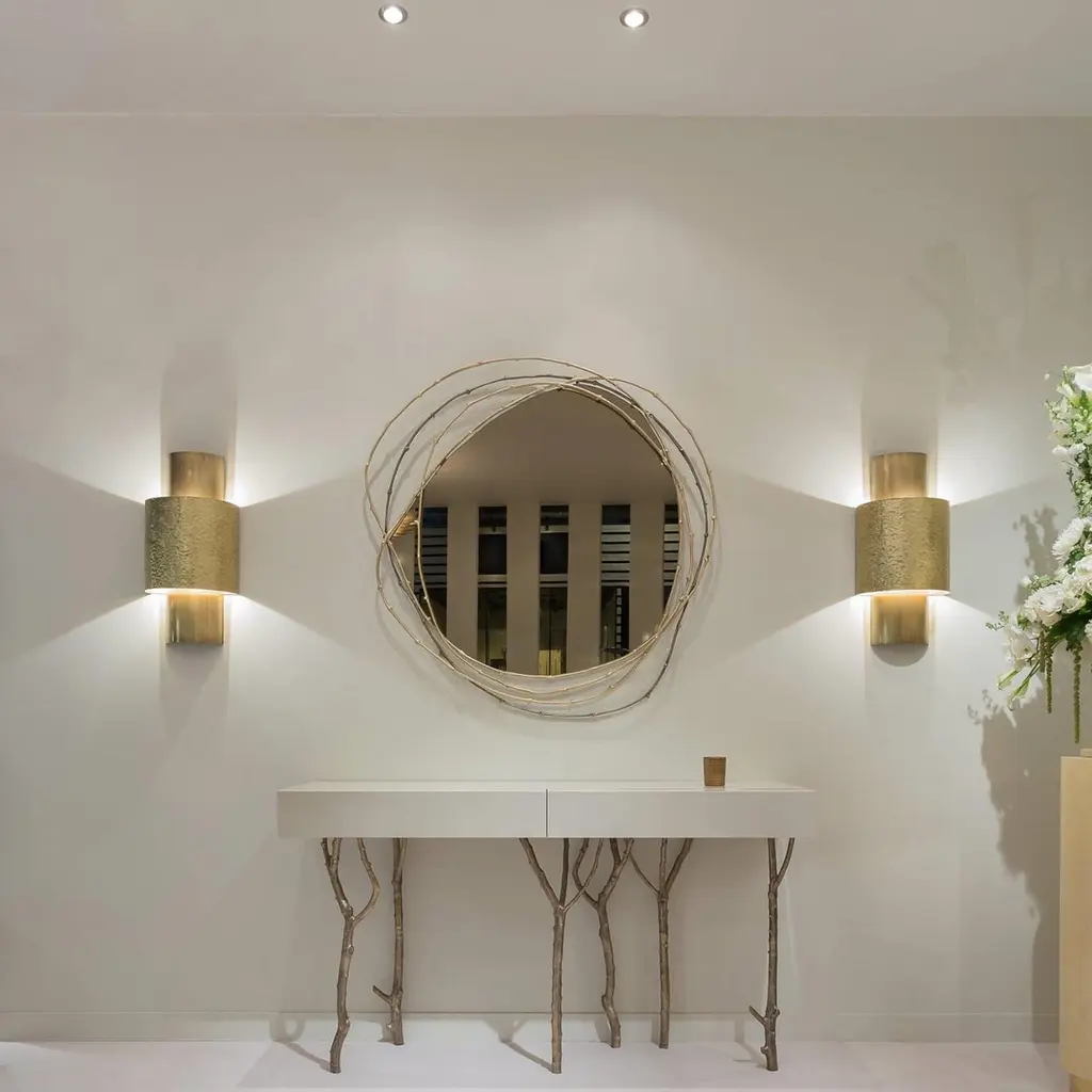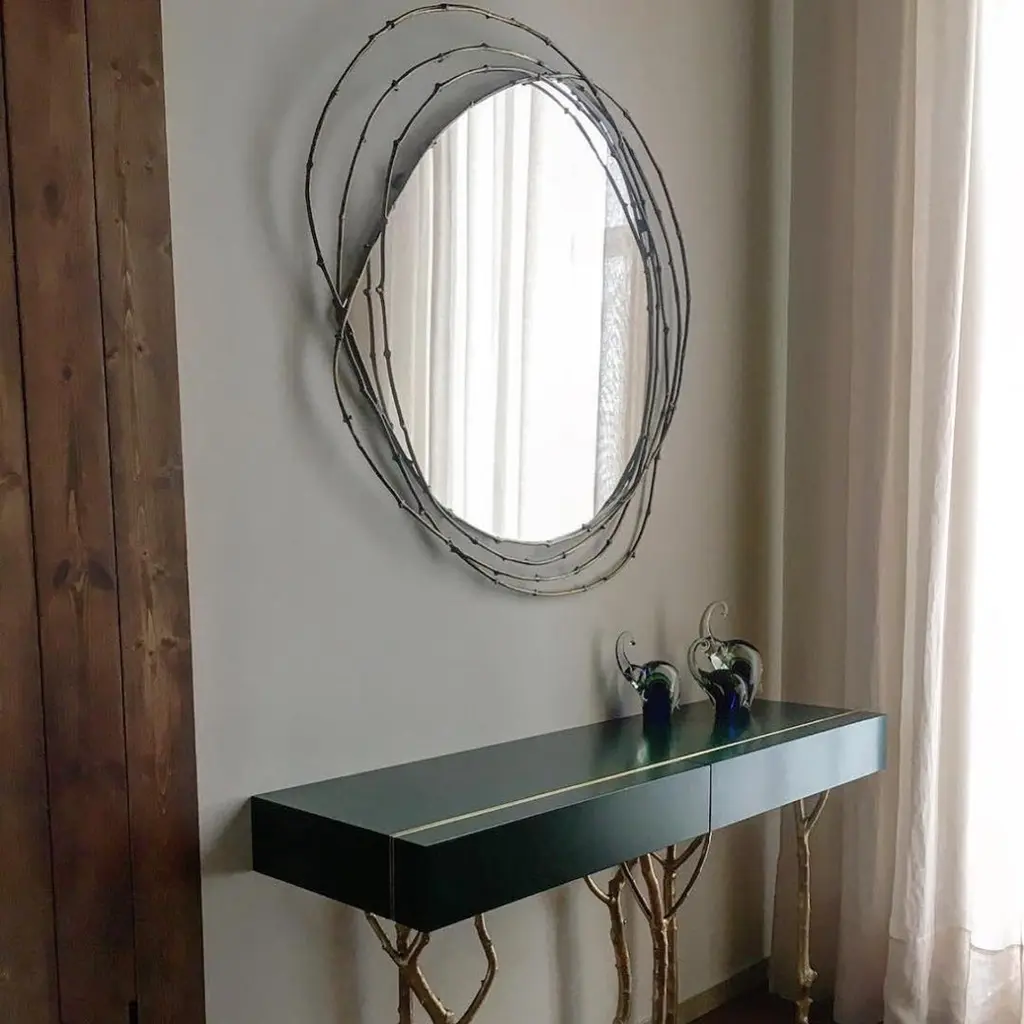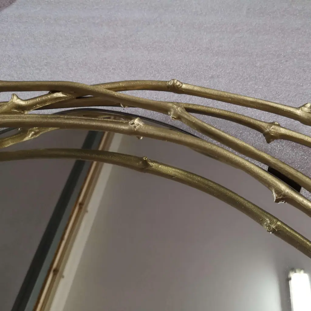 Framing the beholder in a crown of vine branches, this mirror is the ultimate artisanal piece. The three arches that form the frame are handmade from vine branches, molded in brass casting,Frame: Cast brass in Brass, Antique Brass, Silver, Antique Silver, Copper or Antique Copper.Mirror: Clear, Bronze or Smokey finishingSize can be customized to fit your space perfectly.We do our best to expedite production and to ship and deliver product within the listed lead time, however current lead times might be longer due to global shipping backlog and delays. These delays are out of our control and cannot be a reason to cancel an order.