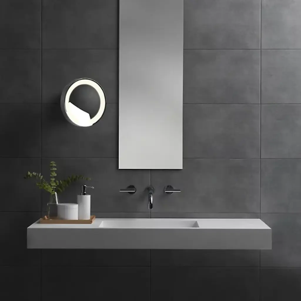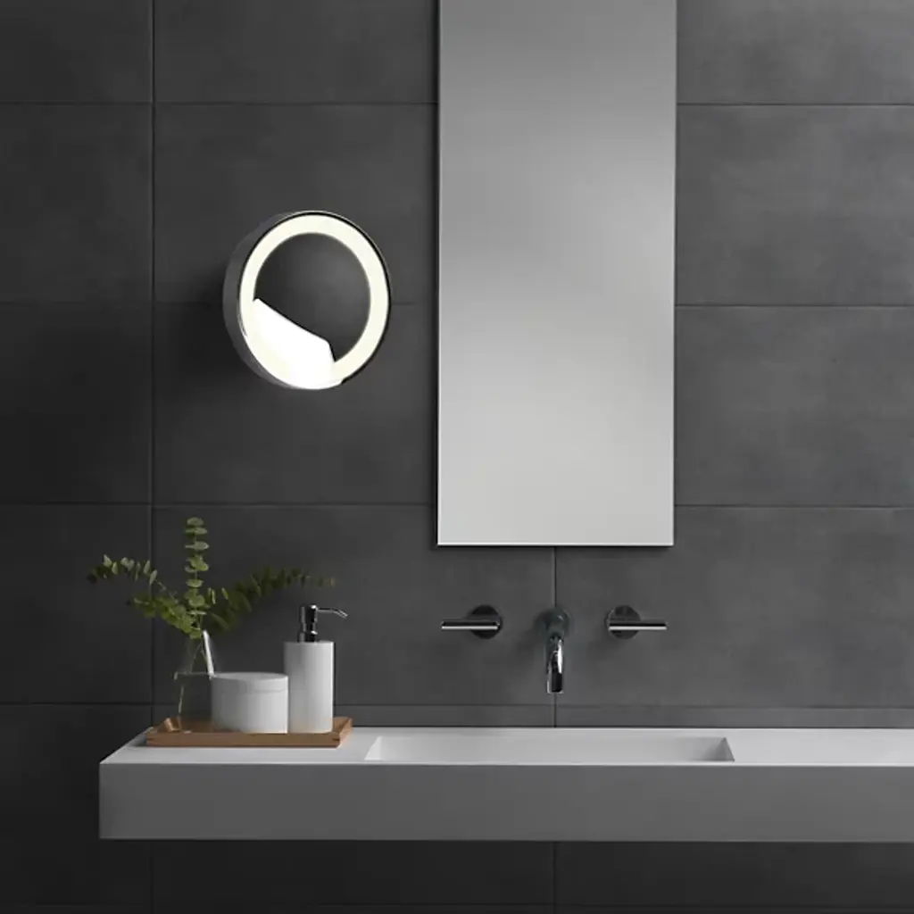 Reflect on your surroundings with the fabulously flexible Catena LED Magnifying Mirror from Astro Lighting. An adjustable and focused contemporary piece attached to its mounting surface via a sleek circular wall mount, an articulating arm extends to a tilting saucer that holds the reflector proper. This smooth metal construction is further accentuated by a ring of damp-listed, integrated LEDs tucked just under the housing’s rim, adding both focused appeal and ambient illumination to your daily tasks.