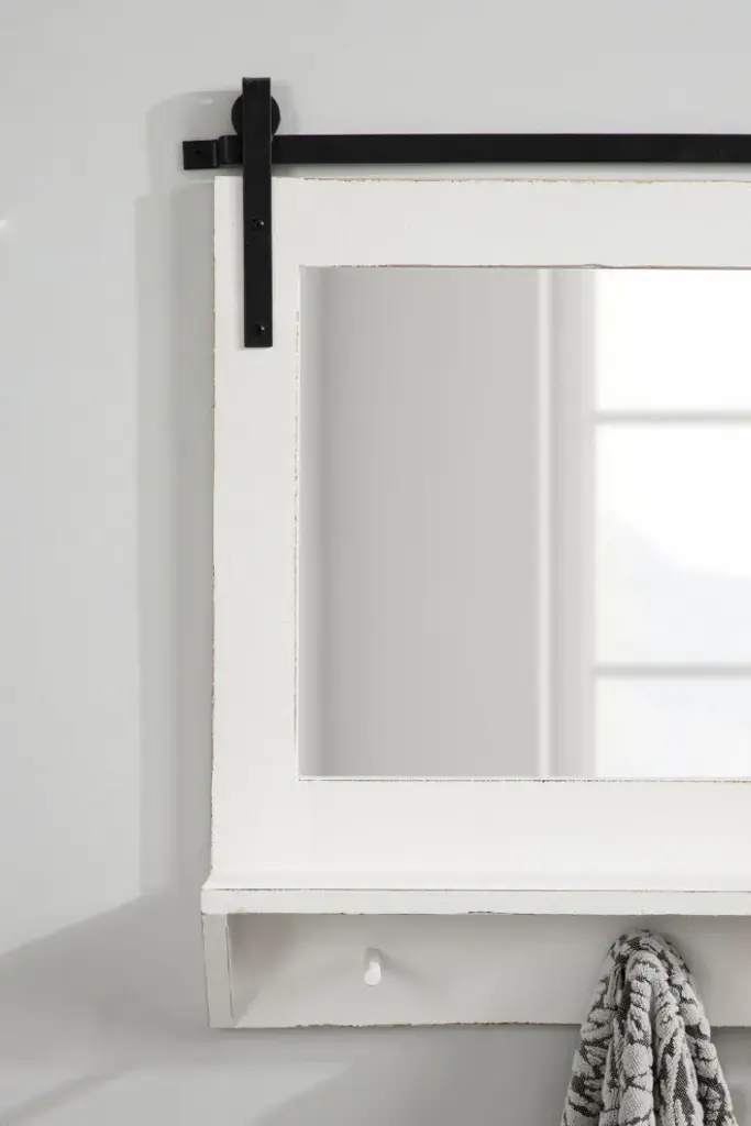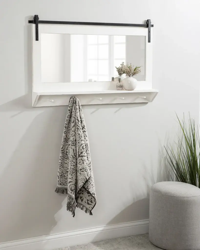 Cates Framed Wall Mirror With Shelf And Hooks, White 42x27