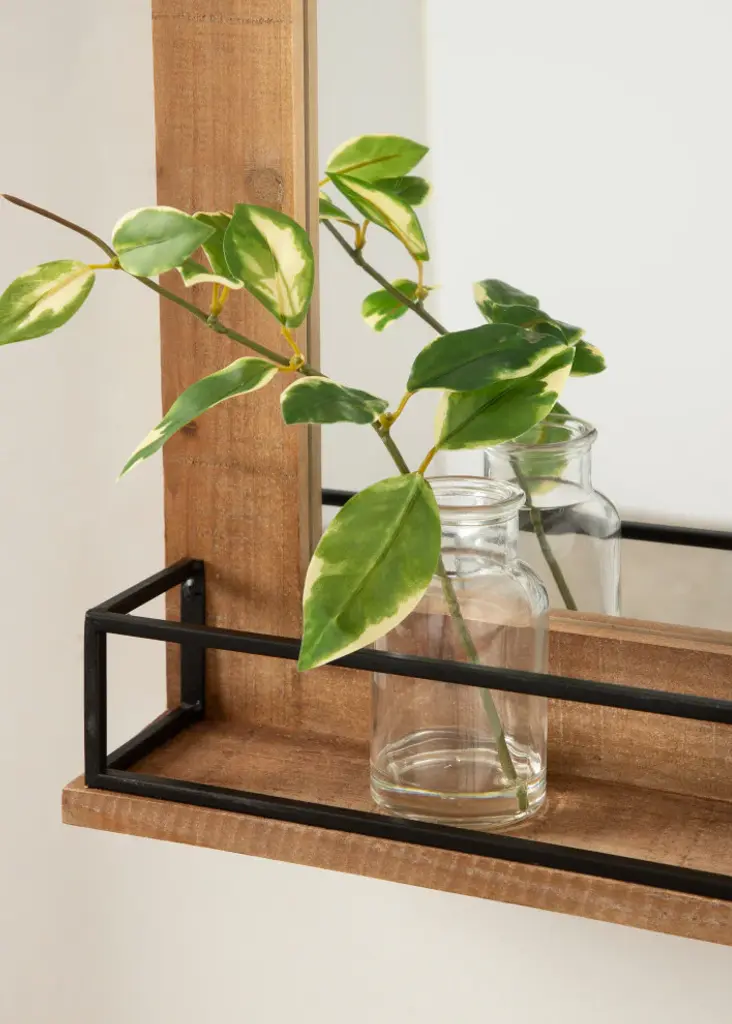 Cates Framed Wall Mirror With Shelf, Rustic Brown 24x31