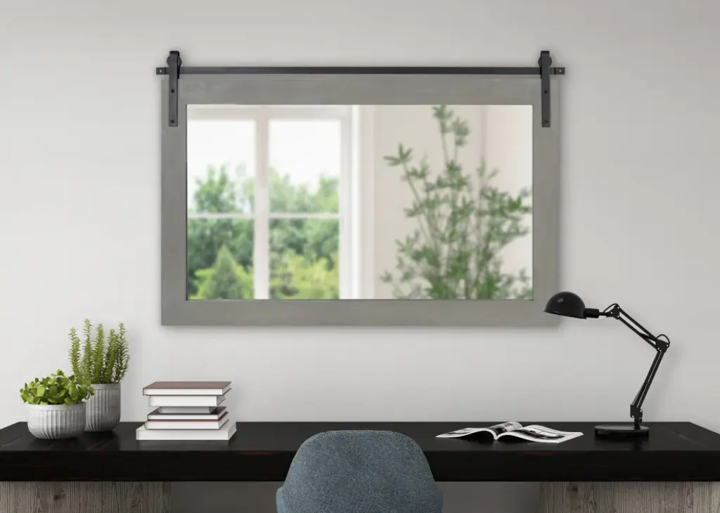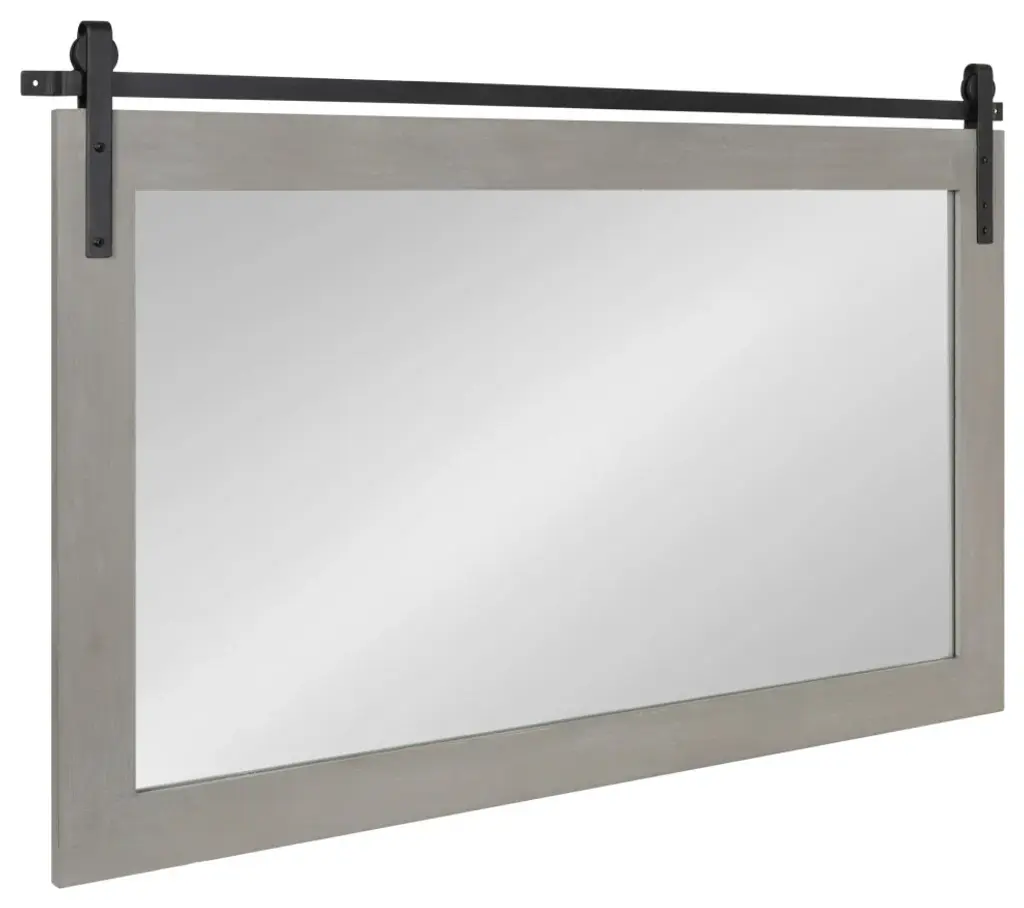 Are you a fan of the timelessness of farmhouse design? Then the Cates horizontal wall mirror is an excellent addition to your home! Inspired by rustic, antique decor, the Cates horizontal mirror features a barn door design with a wood frame and metal brackets. The wooden frame also has a gray finish that is distressed by hand as an added bonus, giving you a one-of-a-kind accent piece for any room. Adding a mirror to your home provides more light to your space, creating a more open concept and feel. Hang it on its own or in multiples for the ultimate farmhouse vibe. Its overall display size is 40 inches wide by 26.25 inches tall, making it the perfect size to hang over a vanity as a master bathroom mirror. You could also explore the other pieces within the Cates collection to create the ultimate farmhouse wall display for organization and storage! When your new Cates wall mirror arrives, you''ll be able to hang it in a matter of seconds with the subtle and convenient holes pre-drilled into the metal brackets.• FARMHOUSE DESIGN: The Cates mirror features a barn door-inspired design and a wide length with a one-of-a-kind distressed gray finish on its frame• QUALITY MATERIALS: The Cates horizontal mirror features wood construction with heavy-duty metal brackets• LARGE SIZE: The overall display dimensions of this statement piece are 40 inches wide by .75 inches deep by 26.25 inches tall• DECORATIVE FUNCTION: Use the Cates as a functional bathroom mirror or as a decorative accent in a farmhouse-themed living space• EASY TO HANG: Hang this timeless piece of rustic decor in a matter of seconds with convenient pre-drilled holes within the iron metal accents