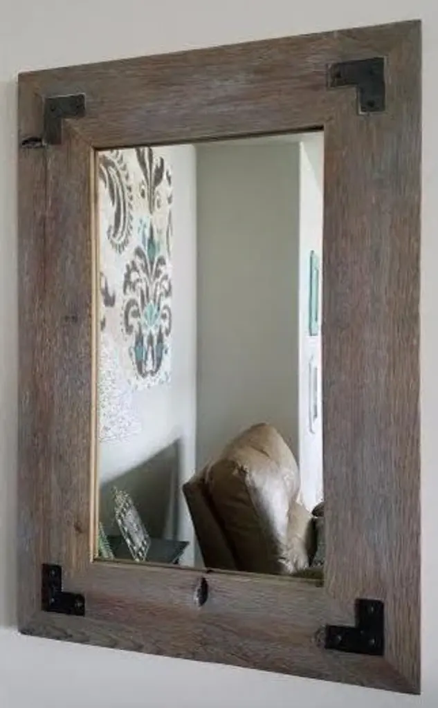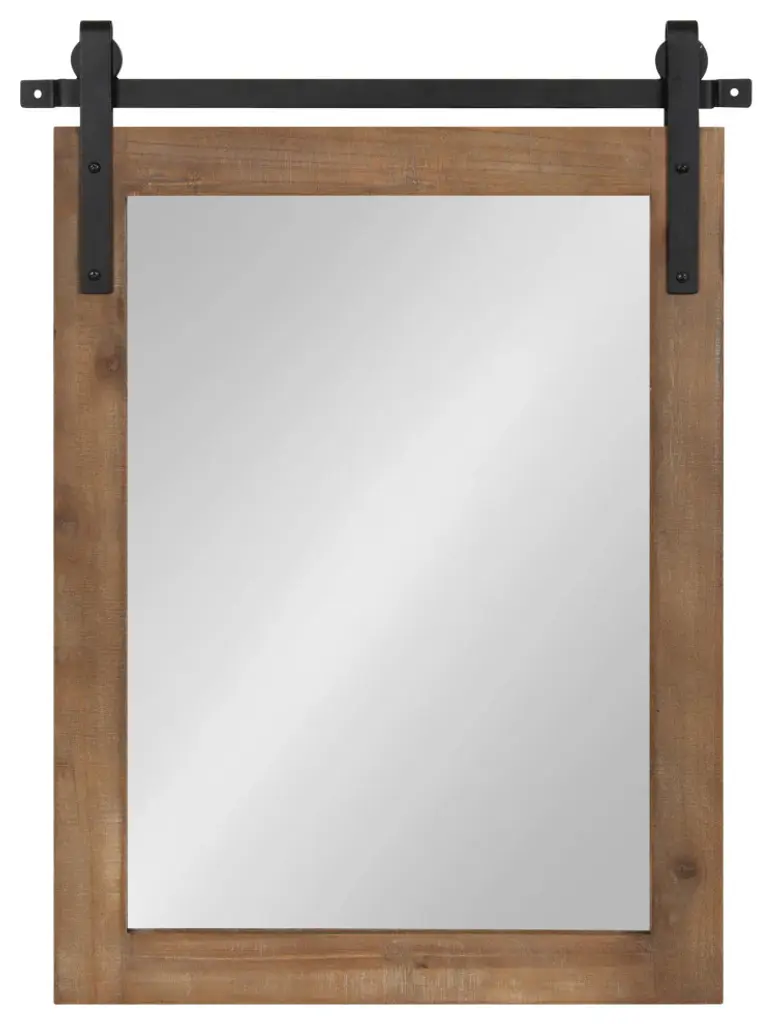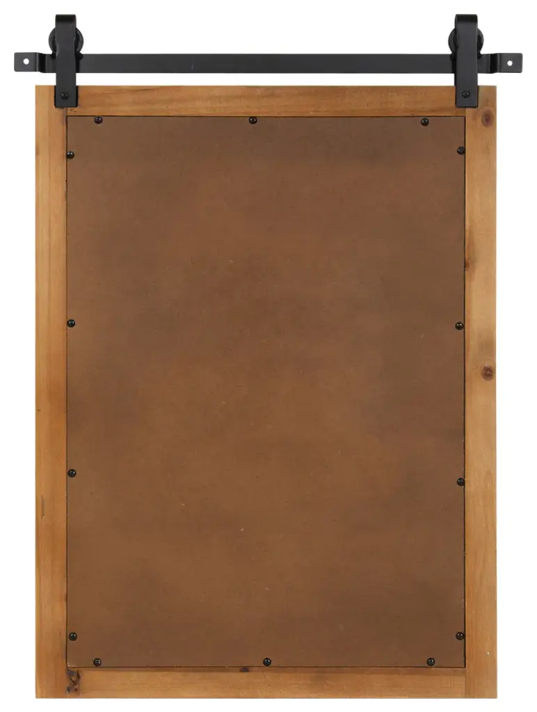 Are you a fan of the timelessness of farmhouse design? Then the Cates wall mirror is an excellent addition to your home! Inspired by rustic, antique decor, the Cates mirror features a barn door design with a wood frame and metal brackets. The wooden frame also has a rustic brown finish that is distressed by hand as an added bonus, giving you a one-of-a-kind accent piece for any room. Adding a mirror to your home provides more light to your space, creating a more open concept and feel. Hang it on its own or in multiples for the ultimate farmhouse vibe. It''s overall display size is 18 inches wide by 26.25 inches tall, making it the perfect size to hang over a vanity as a master bathroom mirror. You could also explore the other pieces within the Cates collection to create the ultimate farmhouse wall display for organization and storage! When your new Cates wall mirror arrives, you''ll be able to hang it in a matter of seconds with the subtle and convenient holes pre-drilled into the metal brackets. • FARMHOUSE DESIGN: The Cates mirror features a barn door-inspired design with a one-of-a-kind distressed rustic brown finish on its frame• QUALITY MATERIALS: The Cates mirror features a wood construction with heavy-duty metal brackets• LARGE SIZE: The overall display dimensions of this statement piece are 18 inches wide by .75 inches deep by 26.25 inches tall• DECORATIVE FUNCTION: Use the Cates as a functional bathroom mirror or as a decorative accent in a farmhouse-themed living space • EASY TO HANG: Hang this timeless piece of rustic decor in a matter of seconds with convenient pre-drilled holes within the iron accents