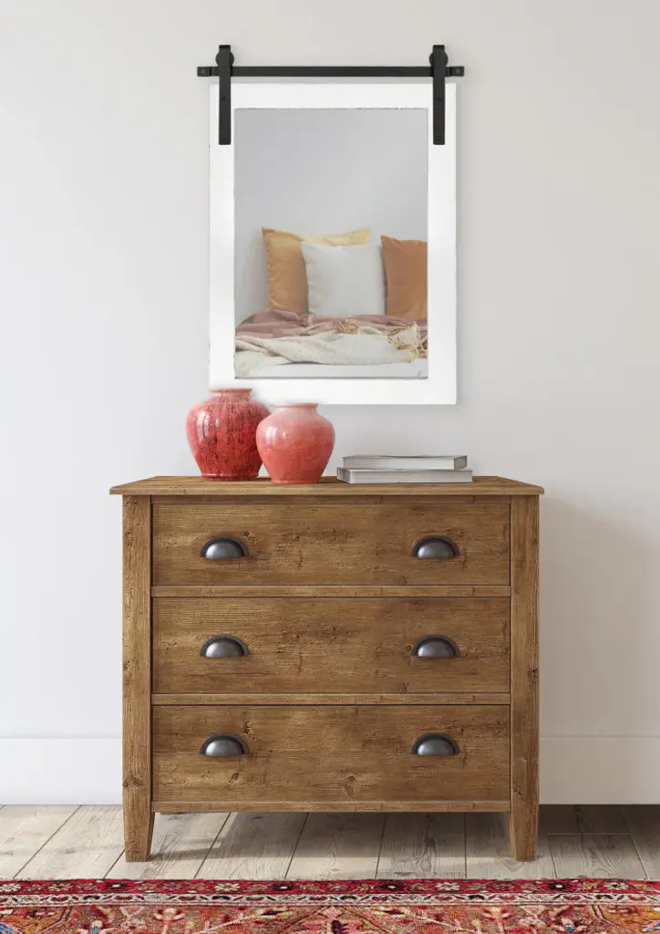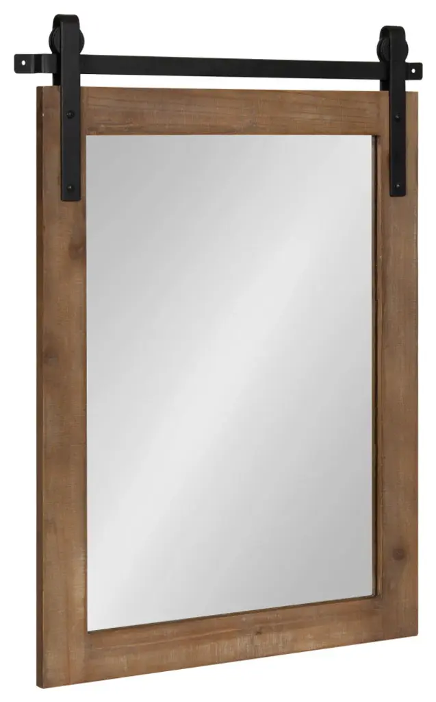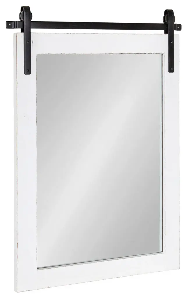 Are you a fan of the timelessness of farmhouse design? Then the Cates wall mirror is an excellent addition to your home! Inspired by rustic, antique decor, the Cates mirror features a barn door design with a wood frame and metal brackets. The wooden frame also has a white finish that is distressed by hand as an added bonus, giving you a one-of-a-kind accent piece for any room. Adding a mirror to your home provides more light to your space, creating a more open concept and feel. Hang it on its own or in multiples for the ultimate farmhouse vibe. It''s overall display size is 18 inches wide by 26.25 inches tall, making it the perfect size to hang over a vanity as a master bathroom mirror. You could also explore the other pieces within the Cates collection to create the ultimate farmhouse wall display for organization and storage! When your new Cates wall mirror arrives, you''ll be able to hang it in a matter of seconds with the subtle and convenient holes pre-drilled into the metal brackets. • FARMHOUSE DESIGN: The Cates mirror features a barn door-inspired design with a one-of-a-kind distressed white finish on its frame• QUALITY MATERIALS: The Cates mirror features a wood construction with heavy-duty metal brackets• LARGE SIZE: The overall display dimensions of this statement piece are 18 inches wide by .75 inches deep by 26.25 inches tall• DECORATIVE FUNCTION: Use the Cates as a functional bathroom mirror or as a decorative accent in a farmhouse-themed living space • EASY TO HANG: Hang this timeless piece of rustic decor in a matter of seconds with convenient pre-drilled holes within the iron accents