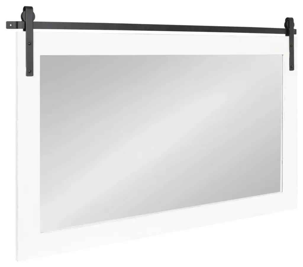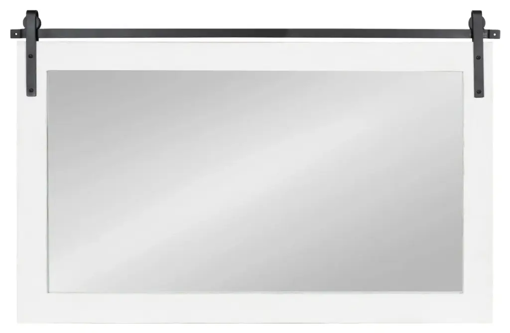 Are you a fan of the timelessness of farmhouse design? Then the Cates horizontal wall mirror is an excellent addition to your home! Inspired by rustic, antique decor, the Cates horizontal mirror features a barn door design with a wood frame and metal brackets. The wooden frame also has a white finish that is distressed by hand as an added bonus, giving you a one-of-a-kind accent piece for any room. Adding a mirror to your home provides more light to your space, creating a more open concept and feel. Hang it on its own or in multiples for the ultimate farmhouse vibe. Its overall display size is 40 inches wide by 26.25 inches tall, making it the perfect size to hang over a vanity as a master bathroom mirror. You could also explore the other pieces within the Cates collection to create the ultimate farmhouse wall display for organization and storage! When your new Cates wall mirror arrives, you''ll be able to hang it in a matter of seconds with the subtle and convenient holes pre-drilled into the metal brackets.• FARMHOUSE DESIGN: The Cates mirror features a barn door-inspired design and a wide length with a one-of-a-kind distressed white finish on its frame• QUALITY MATERIALS: The Cates horizontal mirror features wood construction with heavy-duty metal brackets• LARGE SIZE: The overall display dimensions of this statement piece are 40 inches wide by .75 inches deep by 26.25 inches tall• DECORATIVE FUNCTION: Use the Cates as a functional bathroom mirror or as a decorative accent in a farmhouse-themed living space• EASY TO HANG: Hang this timeless piece of rustic decor in a matter of seconds with convenient pre-drilled holes within the iron accents