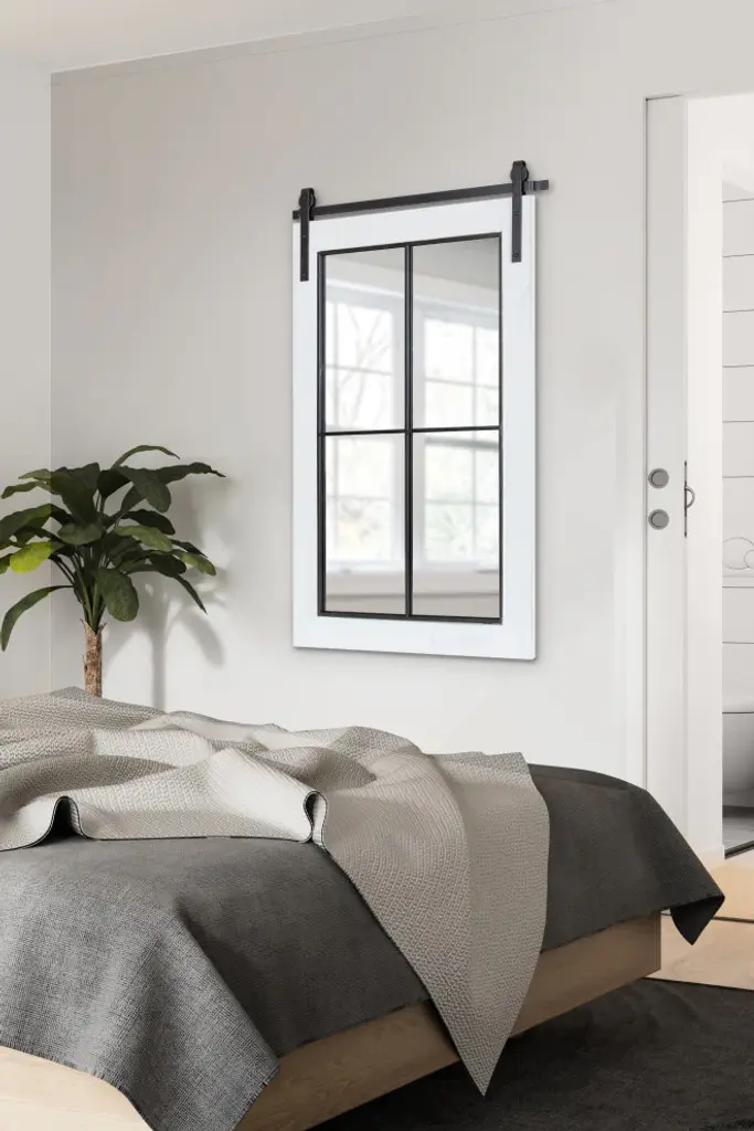 The farmhouse-inspired Cates mirror brings classic sophistication to your home with its rustic design. This beautiful mirror takes inspiration from traditional farmhouse windows, featuring 4 panes separated by a lovely overlay. This overlay and the Cates'' frame are crafted from solid wood, giving it the texture and look of a vintage antique. This wall mirror hangs from an ornamental, barn door-inspired hanging bar for a timeless, refined look. The overall dimensions of the Cates window mirror are 22 inches wide by 37 inches tall, making it a staggering and visually captivating focal point for a variety of rooms in your home. Adding an accent mirror like the Cates window mirror to your space enhances the room by drawing in light sources and creating a more vibrant and dimensional living area. Whether you decide to mount this rustic wall mirror in your living room, bathroom, bedroom, or entryway, it''s easy to hang with pre-drilled holes embedded in the iron hanging bracket.• WINDOW DESIGN: The Cates mirror features a rustic window design with 4 individual panes, giving it a staggering farmhouse-inspired design• QUALITY MATERIAL: This mirror is made from solid wood and iron for a resilient and robust farmhouse look• LARGE SIZE: The overall dimensions of this accent mirror are 22 inches wide by 37 inches tall, making it a visually striking focal point for a variety of spaces• VERSATILE: An accent mirror opens up your space by drawing in light sources while looking fantastic as a conversation piece• EASY TO HANG: On the iron hanging bar, you''ll find pre-drilled holes for easy installation in minutes