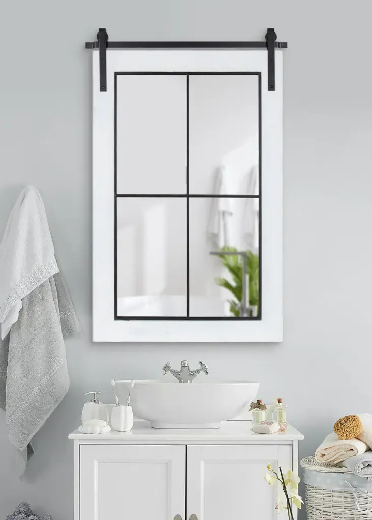 Cates Windowpane Framed Wall Mirror, White, 22x37