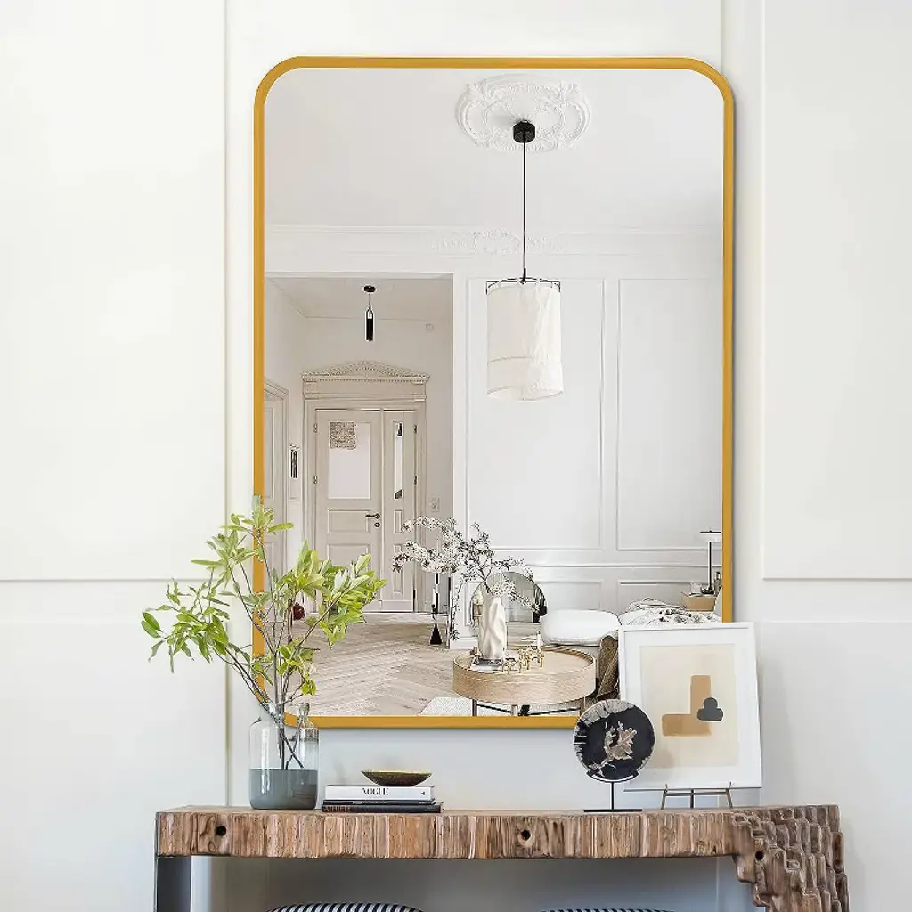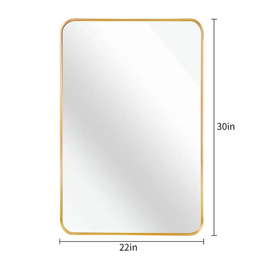 Cavinas 30x22" Rect Bathroom Mirror With Aluminum Alloy Frame,round Corner Metal Wall Mirror With 4Mm Hd Glass,anti-rust&shatterproof Mirror,gold