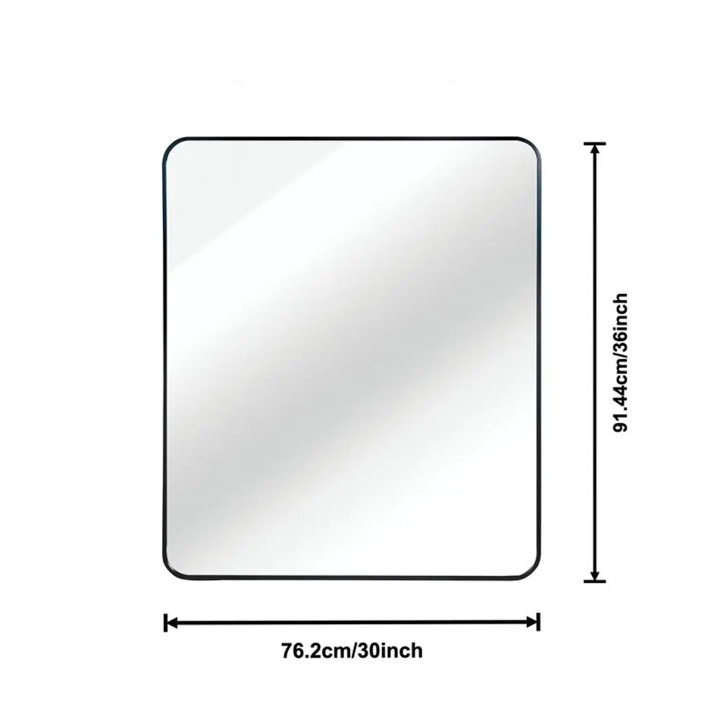 Cavinas 36x30" Rect Bathroom Mirror With Aluminum Alloy Frame,round Corner Metal Wall Mirror With 4Mm Hd Glass,anti-rust&shatterproof Mirror,black