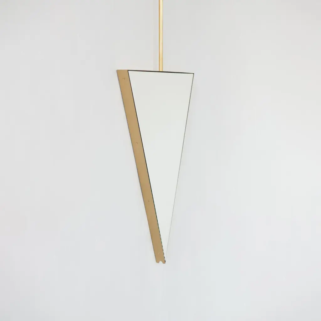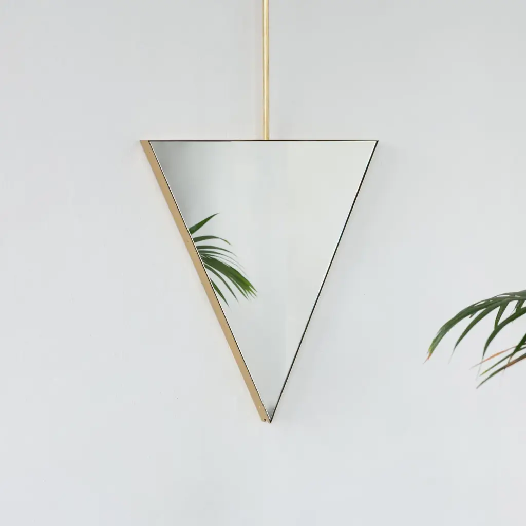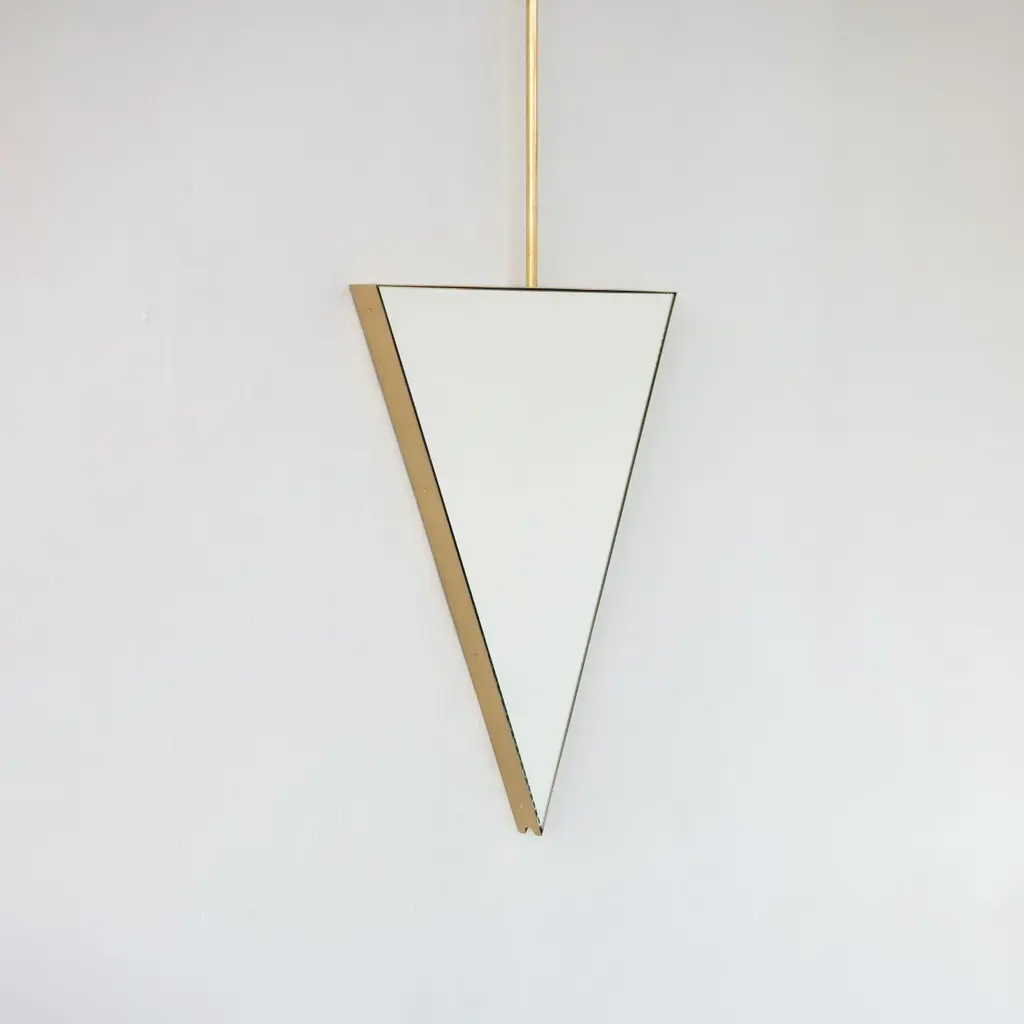 Ceiling Suspended Triangular Reversible Mirror With Modern Brass Frame