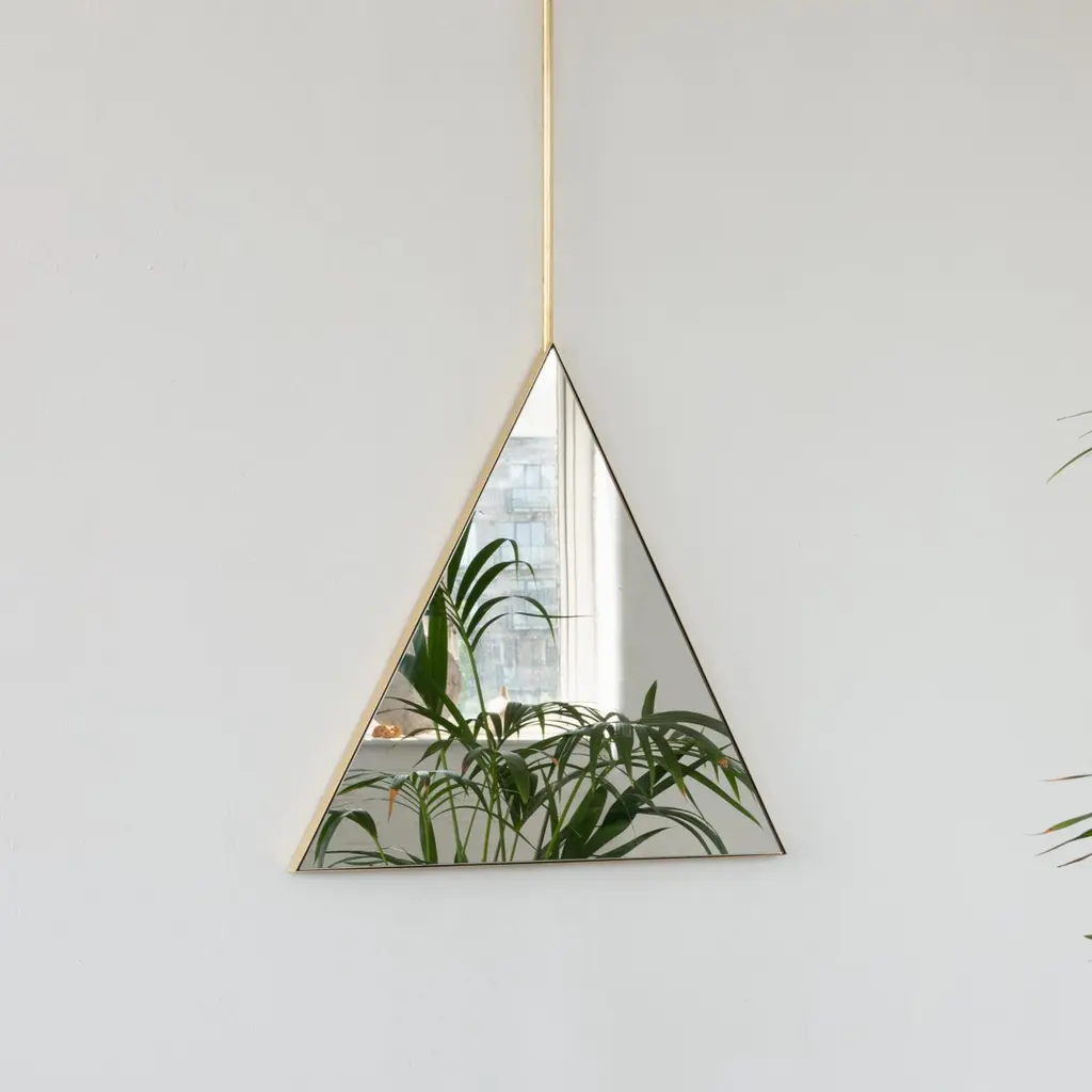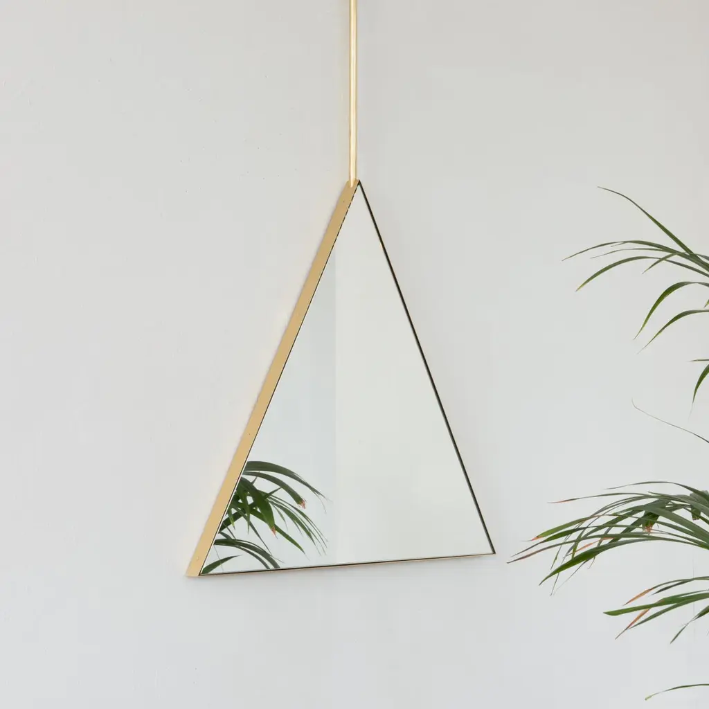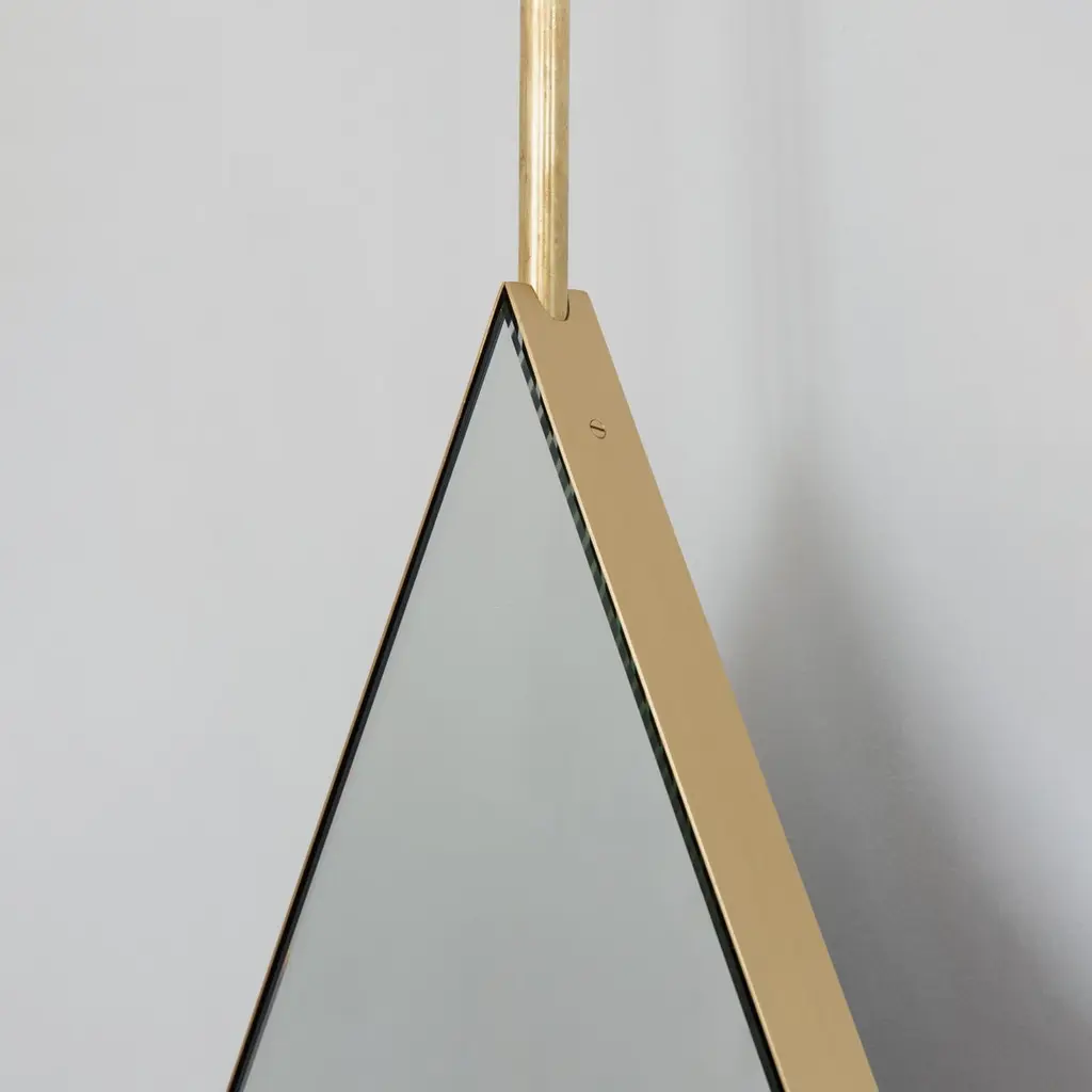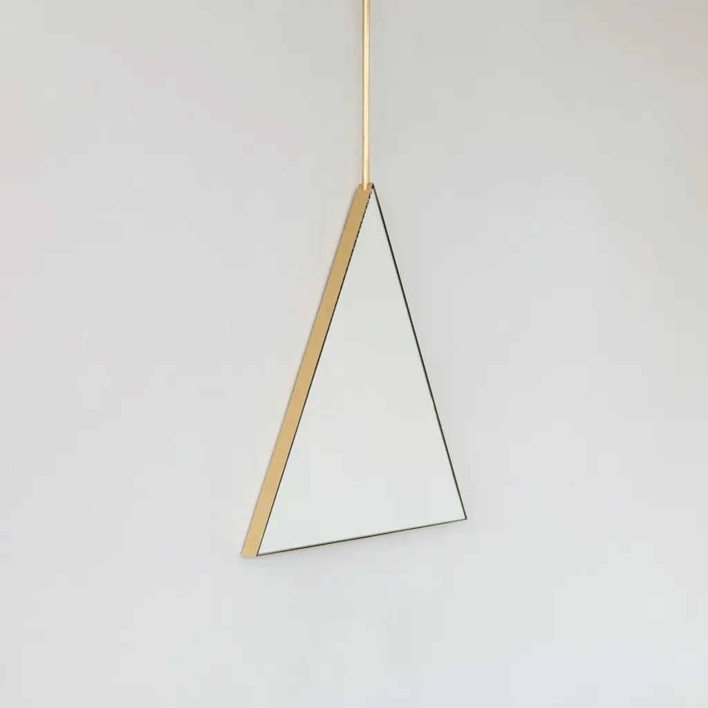 Ceiling Suspended Triangular Reversible Mirror With Modern Brass Frame