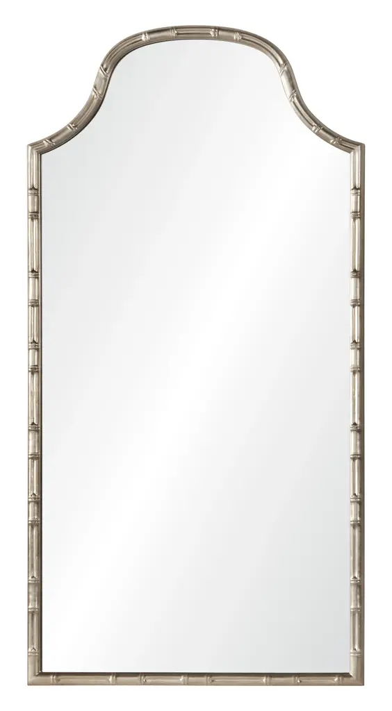 Designed by Celerie Kemble. Hand carved mirror finished in aged silver leaf. Non-beveled center mirror. Cleat hanging hardware provided. ITEM WEIGHT 36.00 LBS BEVEL NO