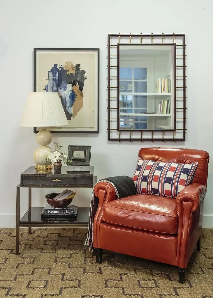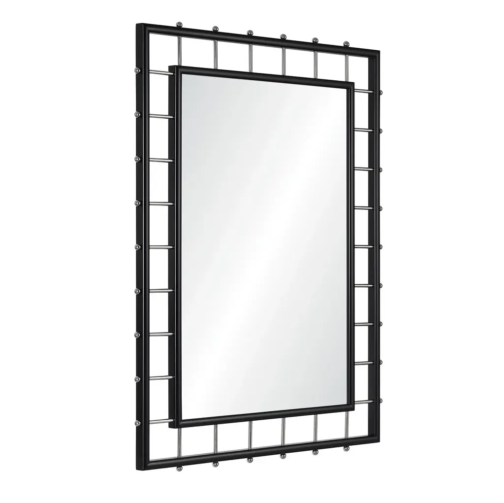 Designed by Celerie Kemble for Mirror Home, this hand carved rectangle mirror is finished in dark mahogany and surrounded by polished stainless steel hardware. This handsome and striking mirror showcases brilliant design and impeccable craftsmanship–perfect for today's modern and sophisticated interiors. Dimensions: 32" x 44" Materials: Metal, Wood and Mirror Finish: Dark Mahogany, Polished Stainless Steel and Mirror Details: Non-beveled. Hang horizontally or vertically Weight: 36 lbs. SKU: CK1101 (Brass) or CK1101-PSS (Steel) Cleat hardware provided. Ships via FedEx. Please allow up to 10 days for delivery. Free shipping in the U.S.