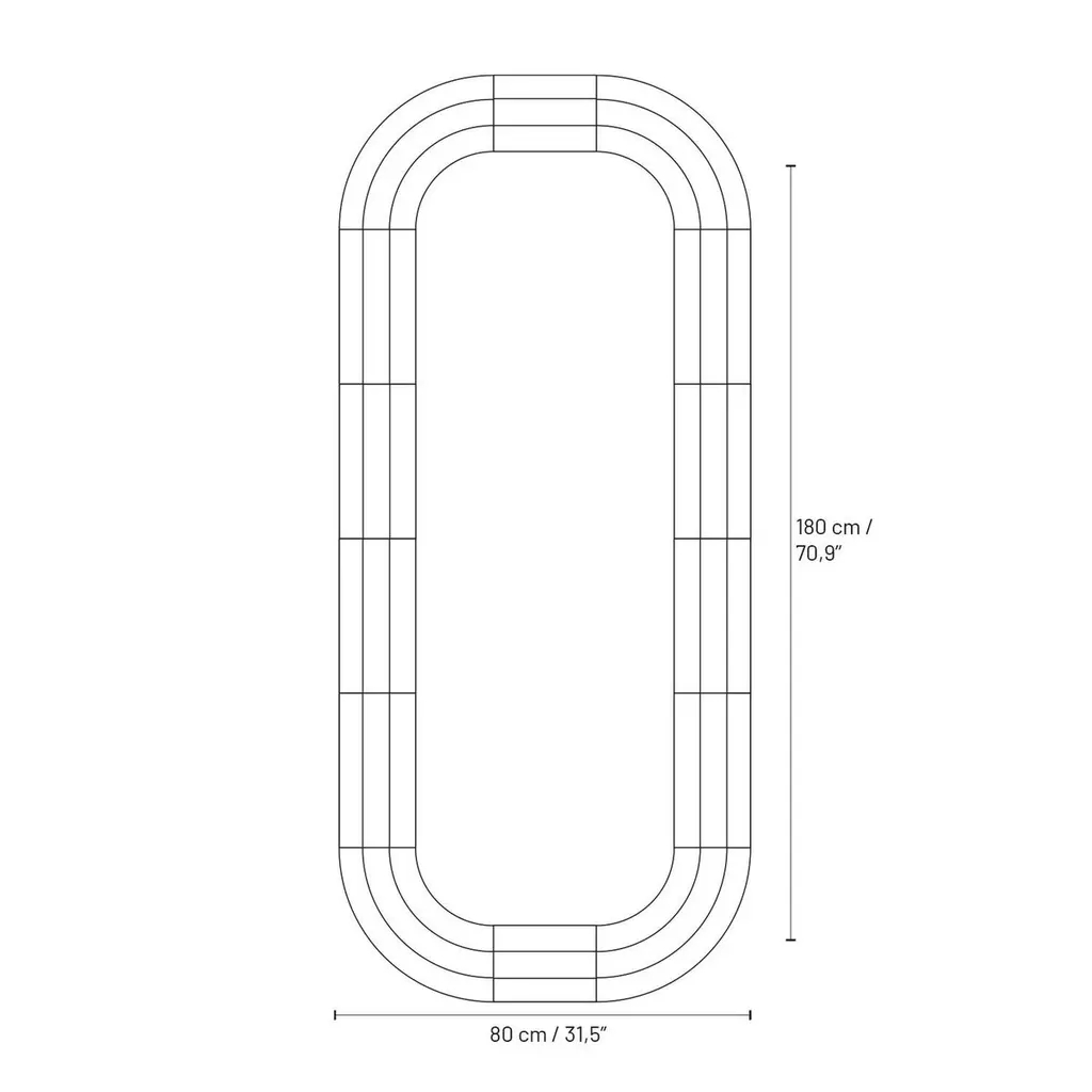 Contemporary ceramic mirror ELO 80x180 in color RED. In the new mirrors collection, Pani Jurek explores ceramics and the reflective potential of mirror surfaces. Inspired by the ripple effect on water, the sculptural frames mimic the expanding circles that appear after a splash. The ceramic elements are airbrushed glazed by hand, which gives them a unique, artisanal character. The name "ELO" is a playful nod to Polish slang for "hello," referring to the greeting between you and your reflection in the mirror. Object dimensions: 180 x 80 x 4 cm / 70,9 x 31,5 x 1,58"Mirror dimensions: 150 x 30 cm / 59,1 x 11,8"Material: hand glazed ceramic