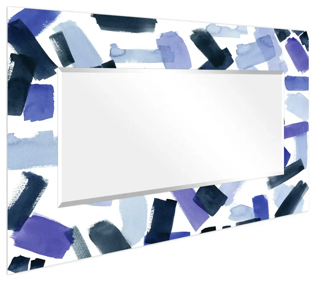 Cerulean Rectangular Beveled Wall Mirror On Free Floating Printed Temped Glass