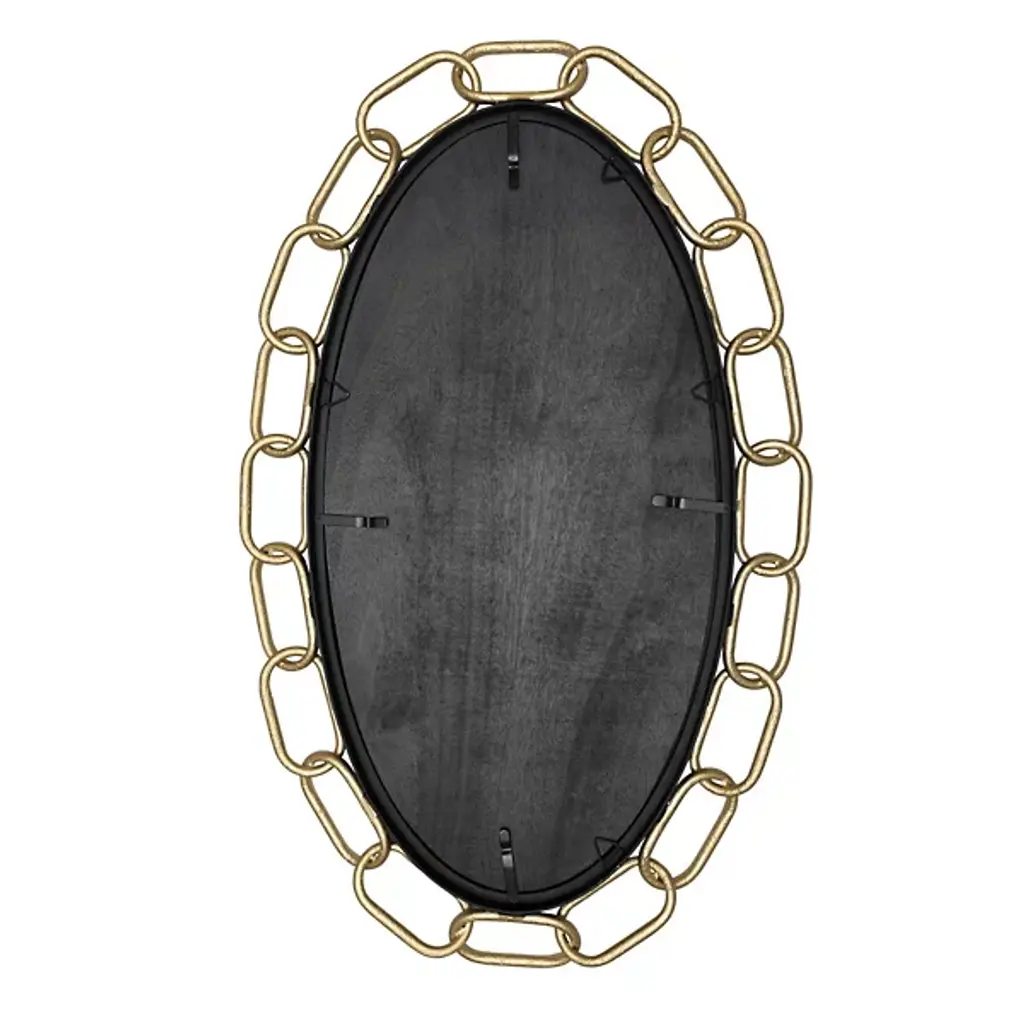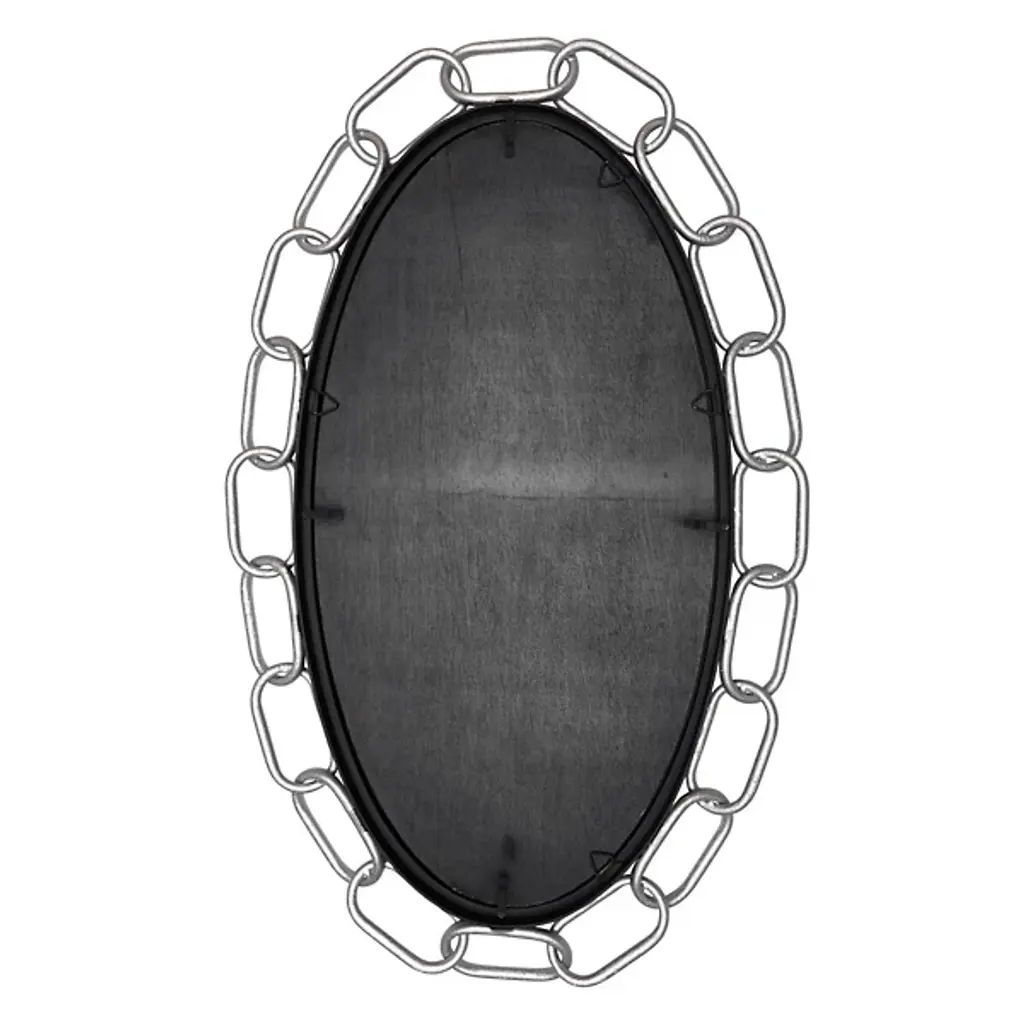 The Chains of Love Oval Wall Mirror from Varaluz, where artistry seamlessly meets functionality. This mirror features a frame made from a chain of links, forming a captivating and distinctive design that adds character to any space. Its elegant oval-shaped mirror serves as both a practical reflection surface and brings a touch of sophistication to your decor. Whether mounted vertically or horizontally, it offers versatility in how you choose to display it. This mirror is crafted from hand-forged recycled steel.