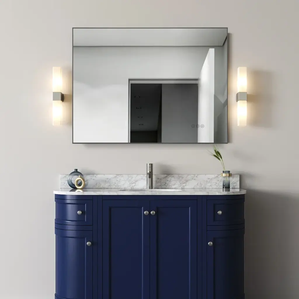 Control the adjustable 3000K/4000K/5000K light color temperature and dimming functions of this 36" Square LED Mirror with the touch of a finger. Ideal for new construction or remodel applications, the Craftmade 36" LED mirror features a 2-piece chassis construction, included defogger and memory function allowing you to keep your chosen settings.