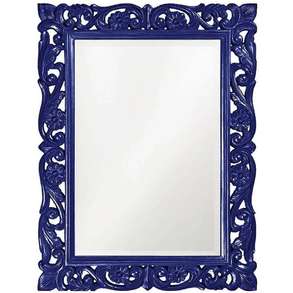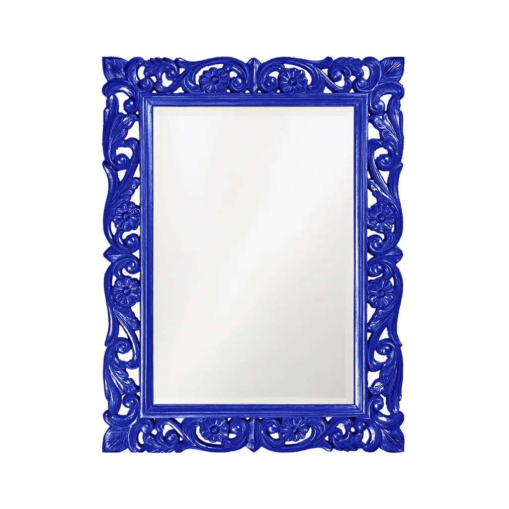 The Chateau Mirror features an ornate rectangle frame complete with scrolls and flourishes. It is then finished in our custom glossy burgundy red lacquer. The Chateau Mirror is a perfect focal point for an entryway, bathroom, bedroom or any room in your home. D-rings are affixed to the back of the mirror so it is ready to hang right out of the box in either a horizontal or vertical orientation The mirrored glass on this piece has a bevel adding to its beauty and style. The Chateau Mirror is part of our custom paint program and is available in one of fourteen vivid colors. It is proudly painted in the USA.