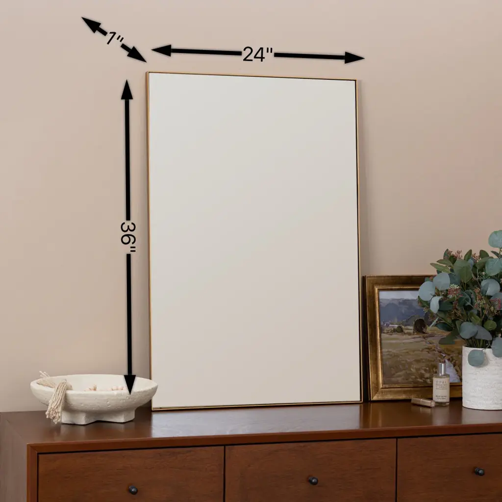 The beautiful Chaz wall mirror features intricate details and a modern look. This piece is sure to add a statement to a space of any style!Glass Dimensions: 35.50x23.75Hangs Both Ways: YesBeveled: NoUse Case: Commercially Approved, Outdoor/Damp-rated.Installation: Ready-to-hang with included, D-Ring Hangers.Details: Hand-crafted Frame, Hand-crafted FinishCare: Wipe Clean with a damp, microfiber cloth.Policy: Limited, 6-Month Manufacturer Warranty