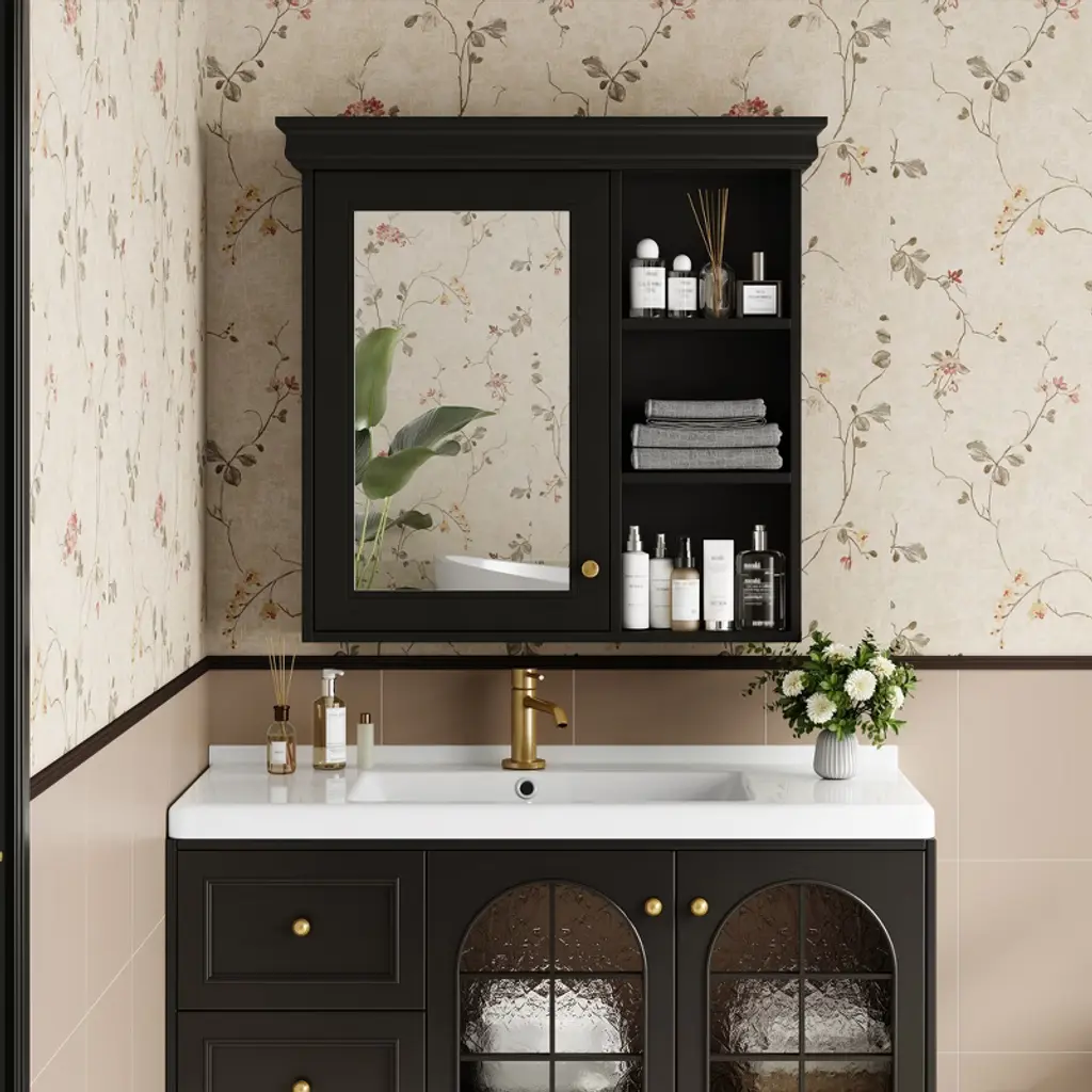 This multi-functional mirror cabinet is expertly crafted from moisture-resistant MDF, making it ideal for bathrooms, kitchens, bedrooms, or offices. The built-in mirror serves dual purposes—acting as both a makeup mirror and a stylish storage solution—while soft-closing hinges ensure quiet, smooth operation. Three adjustable shelves customize to your storage needs, and the easy-to-assemble design (with numbered parts) simplifies setup.
