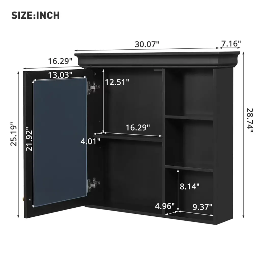 Chery Life 30.07''w X 7.16'' D X 28.74'' H Wall Mounted Mirror Cabinet With Storage Organizer, Black Storage Cabinet For Bathroom
