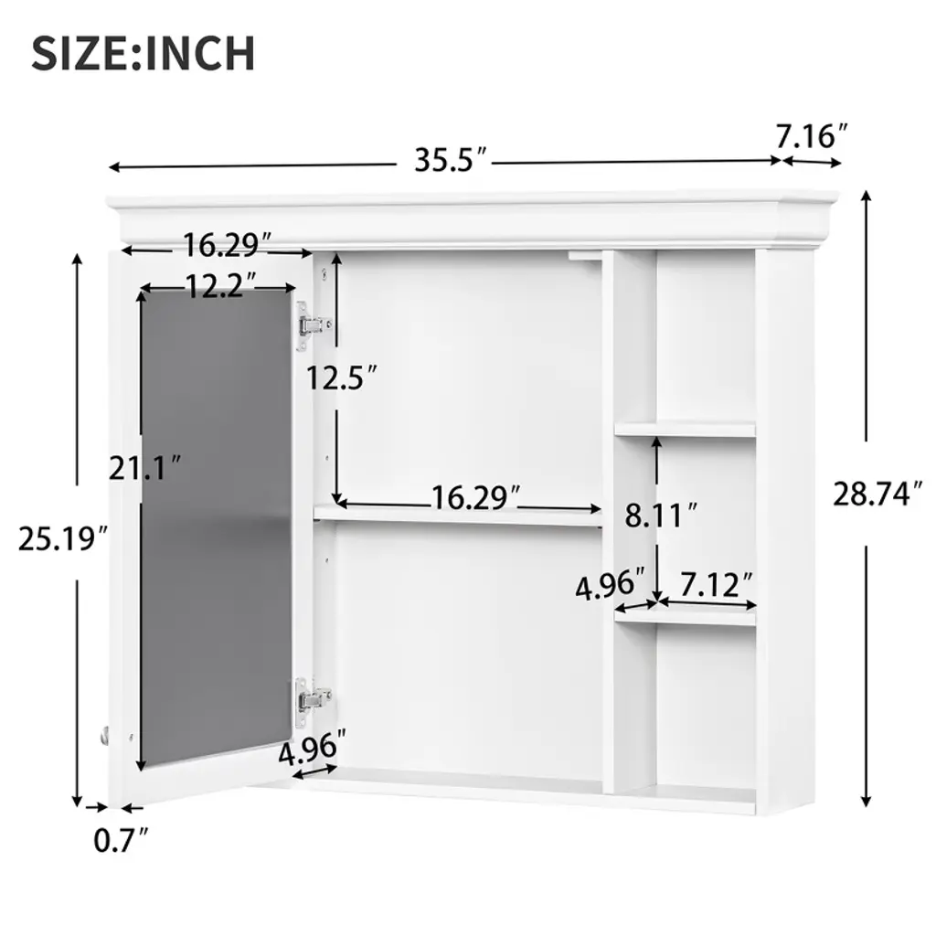 Chery Life 35'' X 28'' Wall Mounted Bathroom Storage Cabinet With Mirror Door, Medicine Cabinet With 6 Open Shelves, White