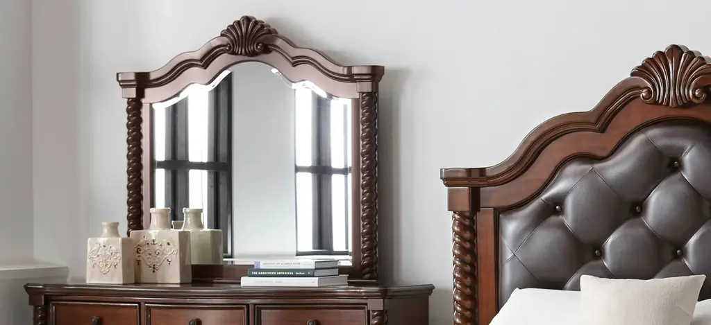 Add character, depth, and style to your room with this lovely Chesapeake Mirror. Quality craftsmanship, combined with a rich, cherry finish and curved lines make this a wonderful addition to your traditional bedroom.