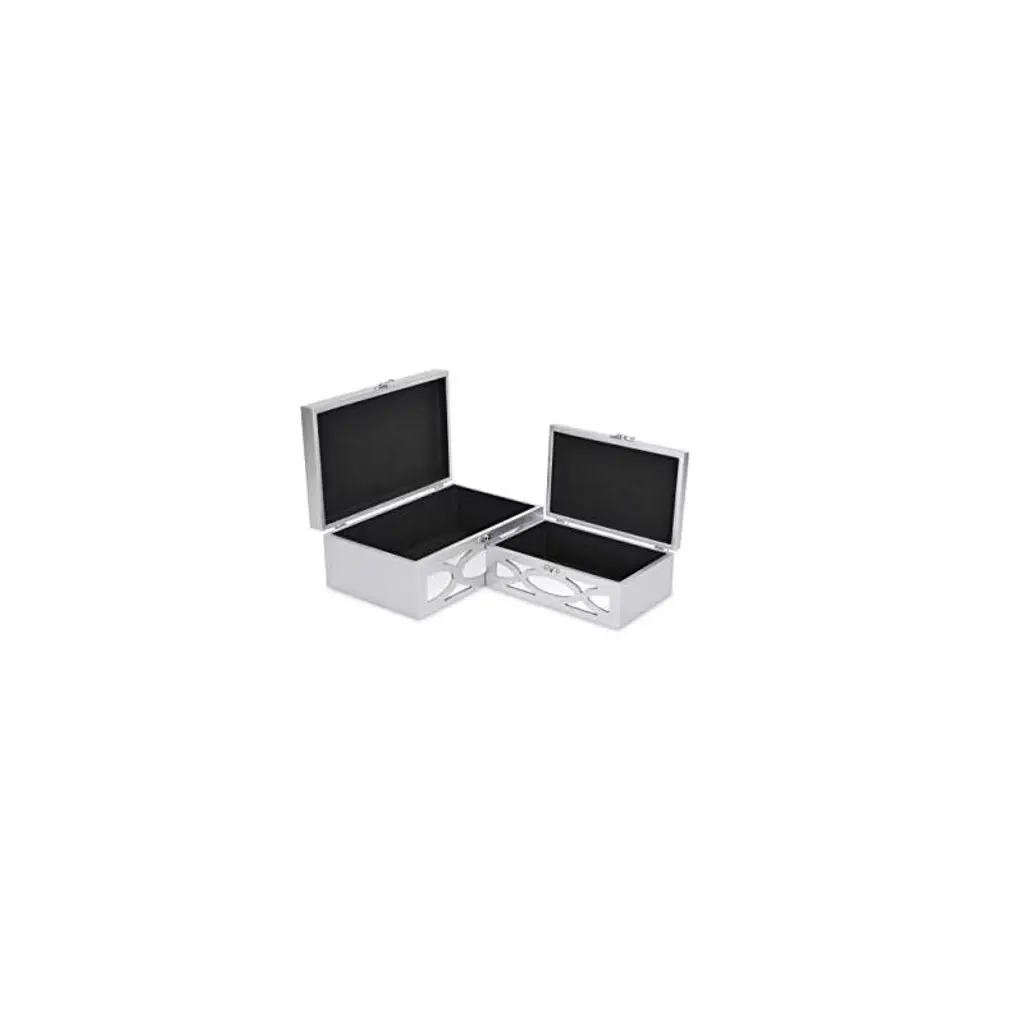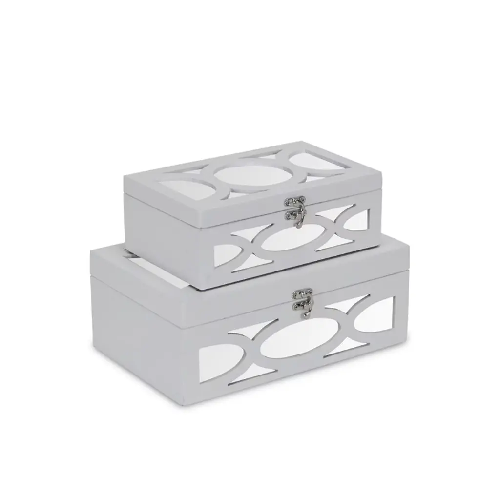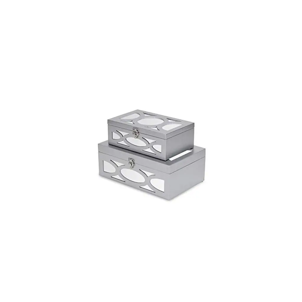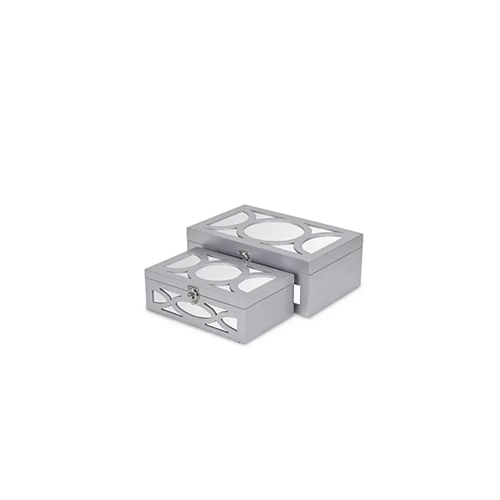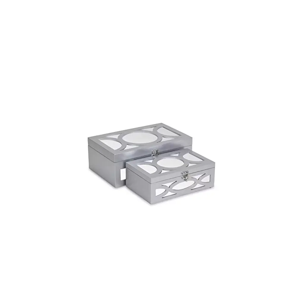 In bedrooms, entryways, mantles and more, keepsake boxes have provided a unique heirloom touch to many spaces. Perfect for storing treasured items or everyday objects, they provide an eye-catching and classic look. Crafted from wood materials, this set of 2 silver colored boxes feature unique circular patterns with distinctive mirrors styled on the top and front.