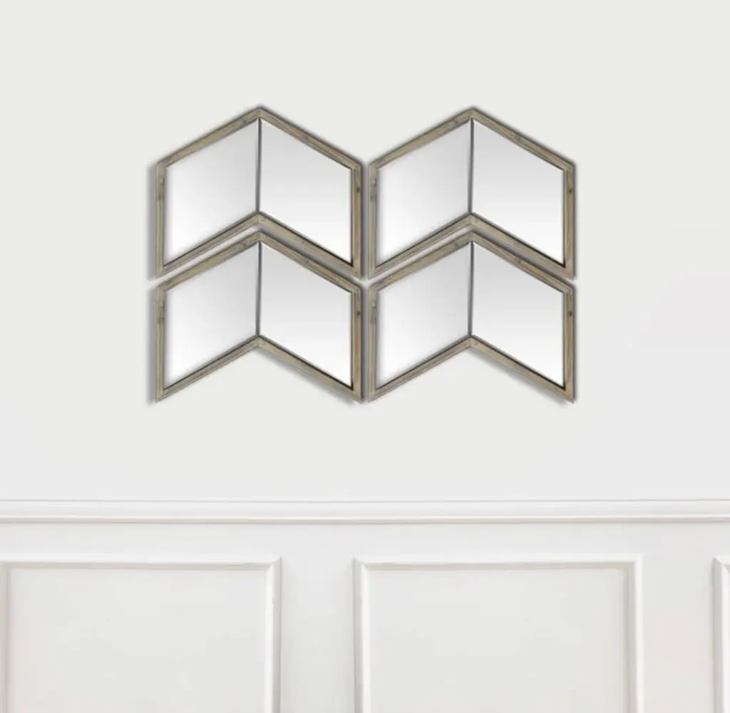 Chevren Brown Wood Frame Chevron Shaped Mirror