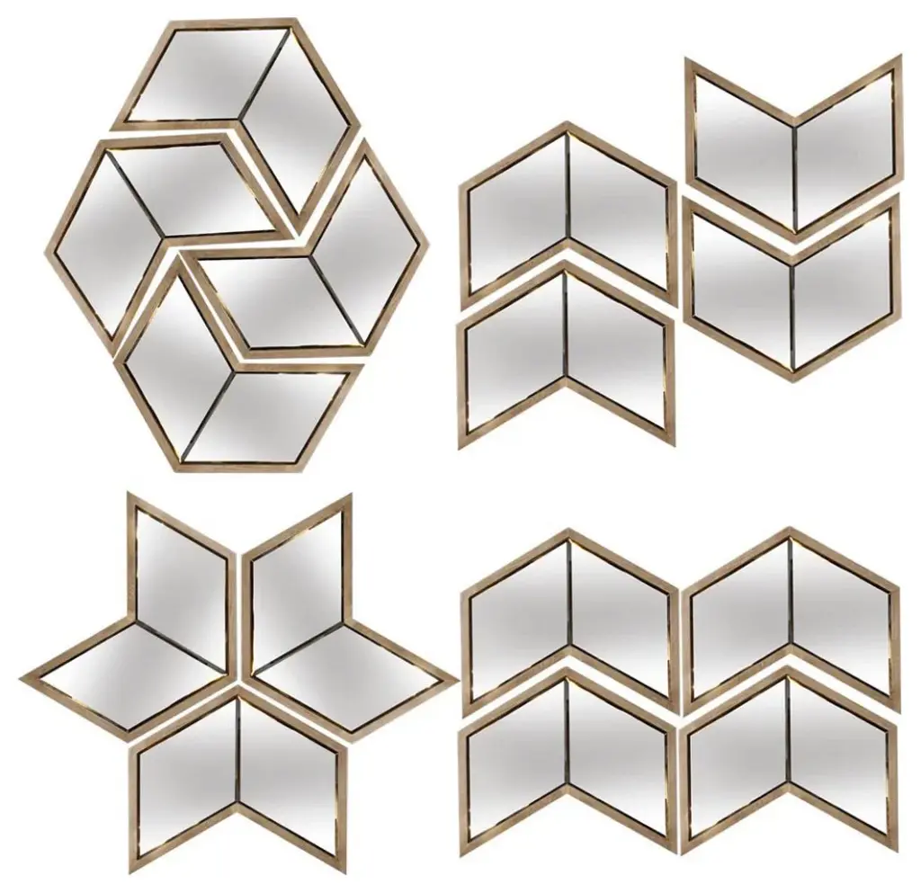 Crafted from wood and finished in a medium brown tone, the Chevren II is an amazing, chevron-shaped mirror that can be displayed both horizontally or vertically. Spanning approximately 26" by 22", the Chevren II looks great when displayed by itself, but even better when clubbed with multiples and varieties from the Chevren series to create a geometrically interesting collection of wall mirrors.
