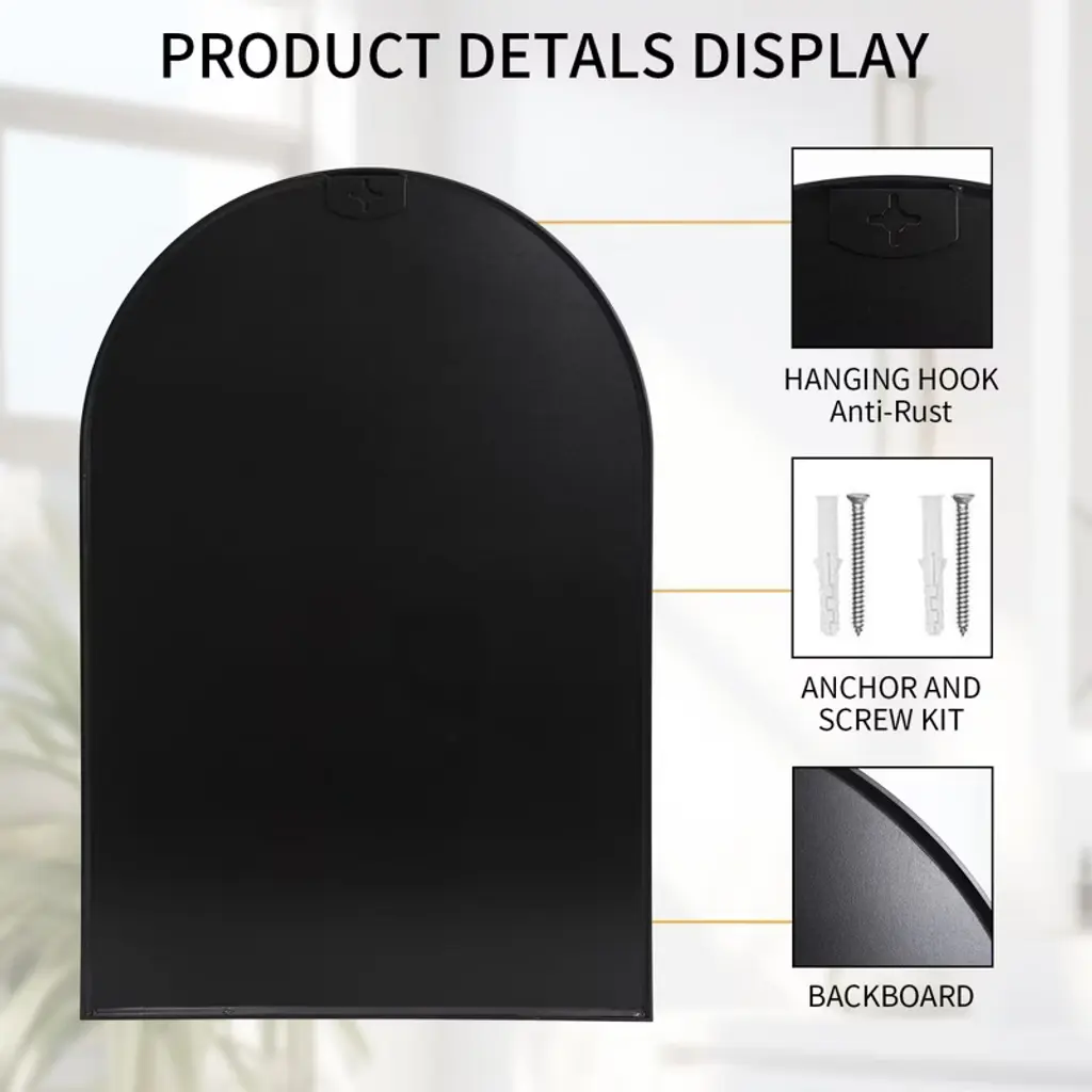 ChicFurnit Bathroom Vanity Mirror enhances your space with an arched top design that bounces light, creating a visually expanded room with a touch of elegance. Crafted from durable aluminum, the seamless frame ensures rust resistance, stability, and long-lasting durability. The 4mm tempered glass offers clear, distortion-free reflections while adding light-enhancing effects. Easy to install with pre-fixed hangers, this versatile mirror fits beautifully in bedrooms, entryways, or salons.