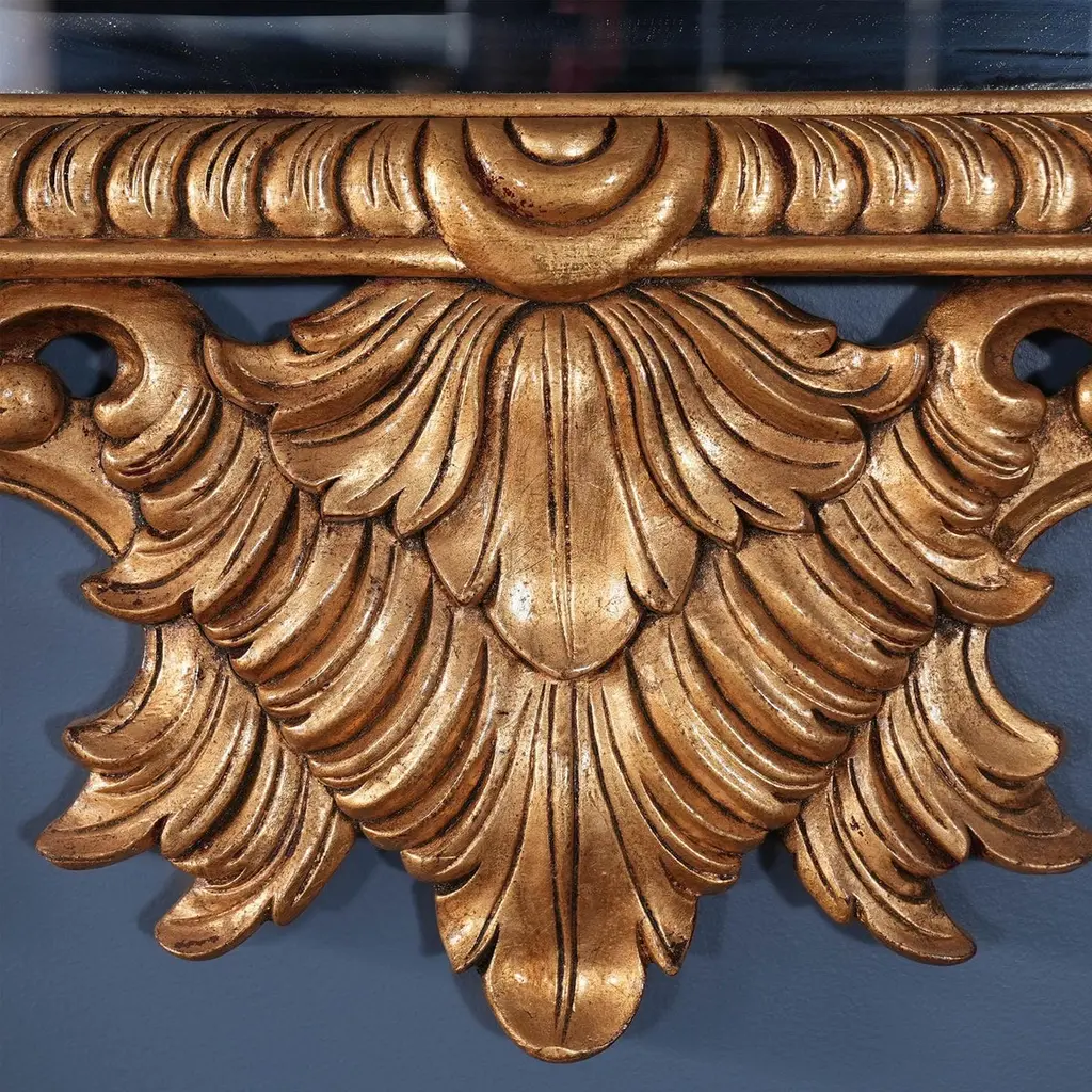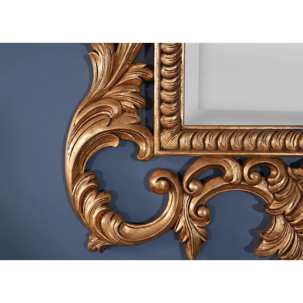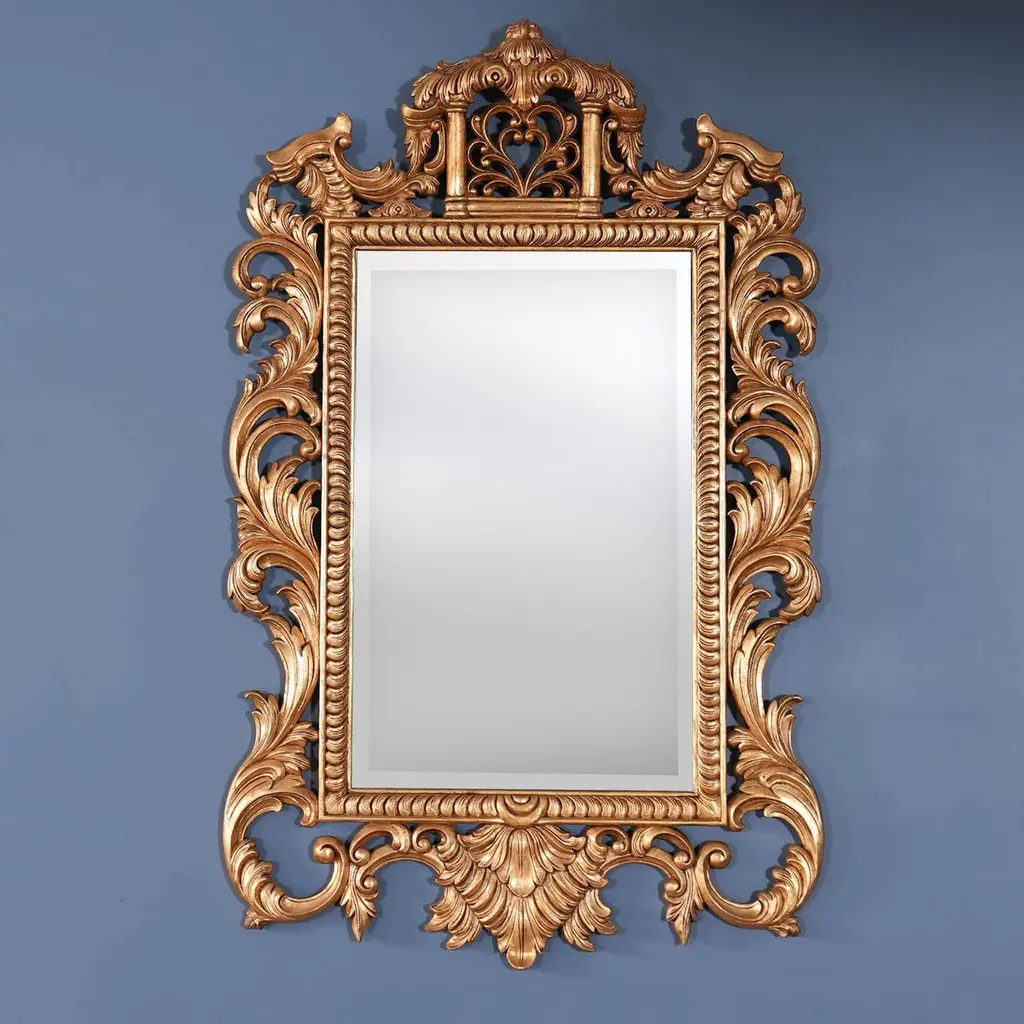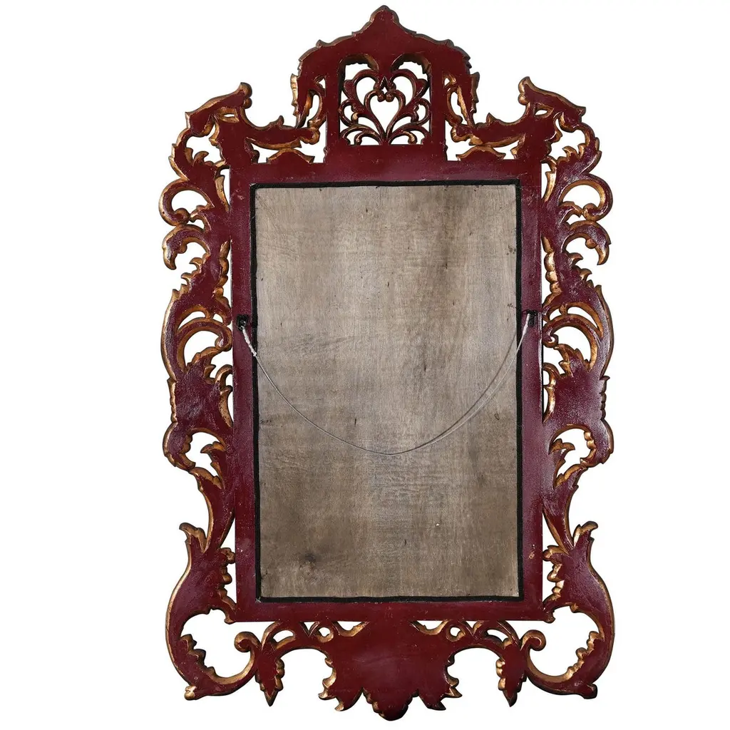A Chinese Chippendale Gold Leaf Mirror is bevelled glass having been hand cut and fitted to the hand carved and hand pierced frame. A high quality solid wood mirror frame.Measures 34″w x 2″d x 55″h