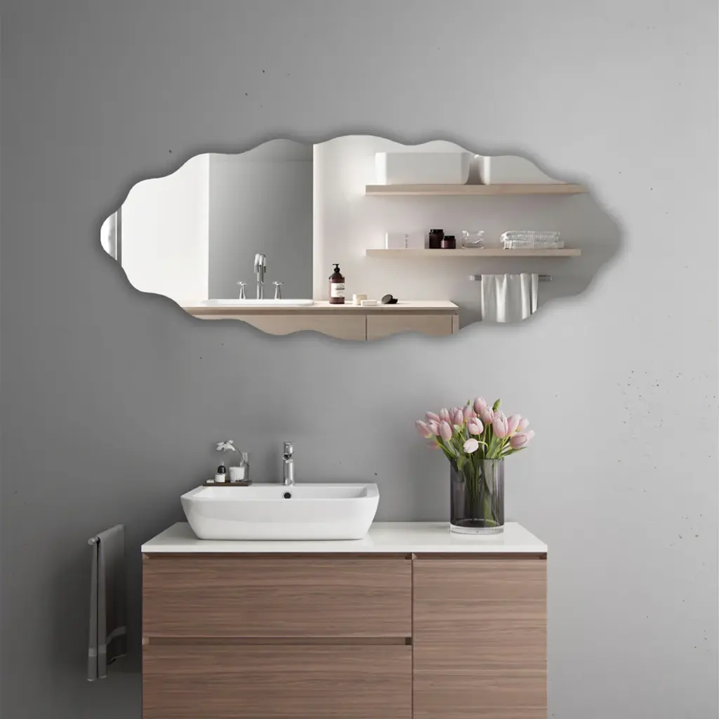 Looking for a unique addition for your home? Look no further! This novelty styled, frameless wall mirror would look great above the couch, in the bathroom, or as an accent piece between two windows! This mirror can hang both horizontally and vertically. Glass mirrorVertical/HorizontalIndoor Setting