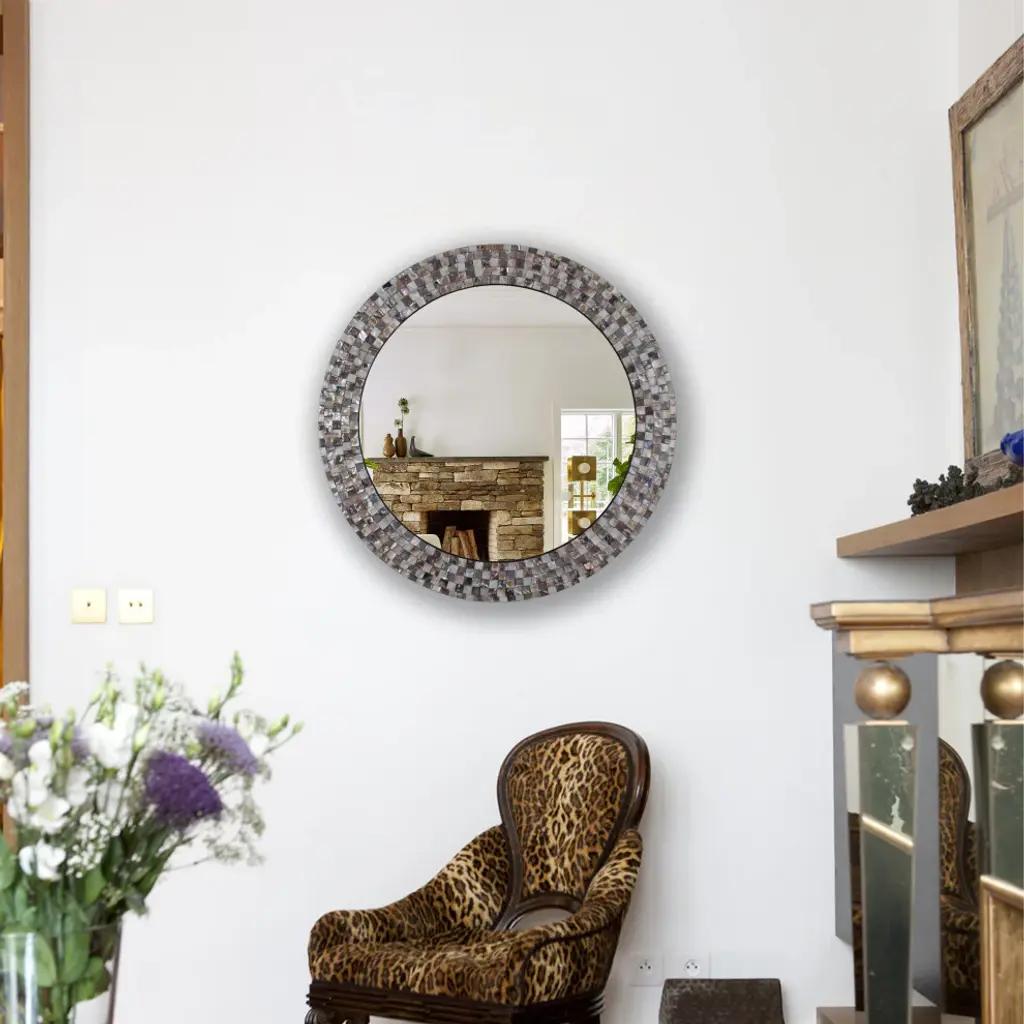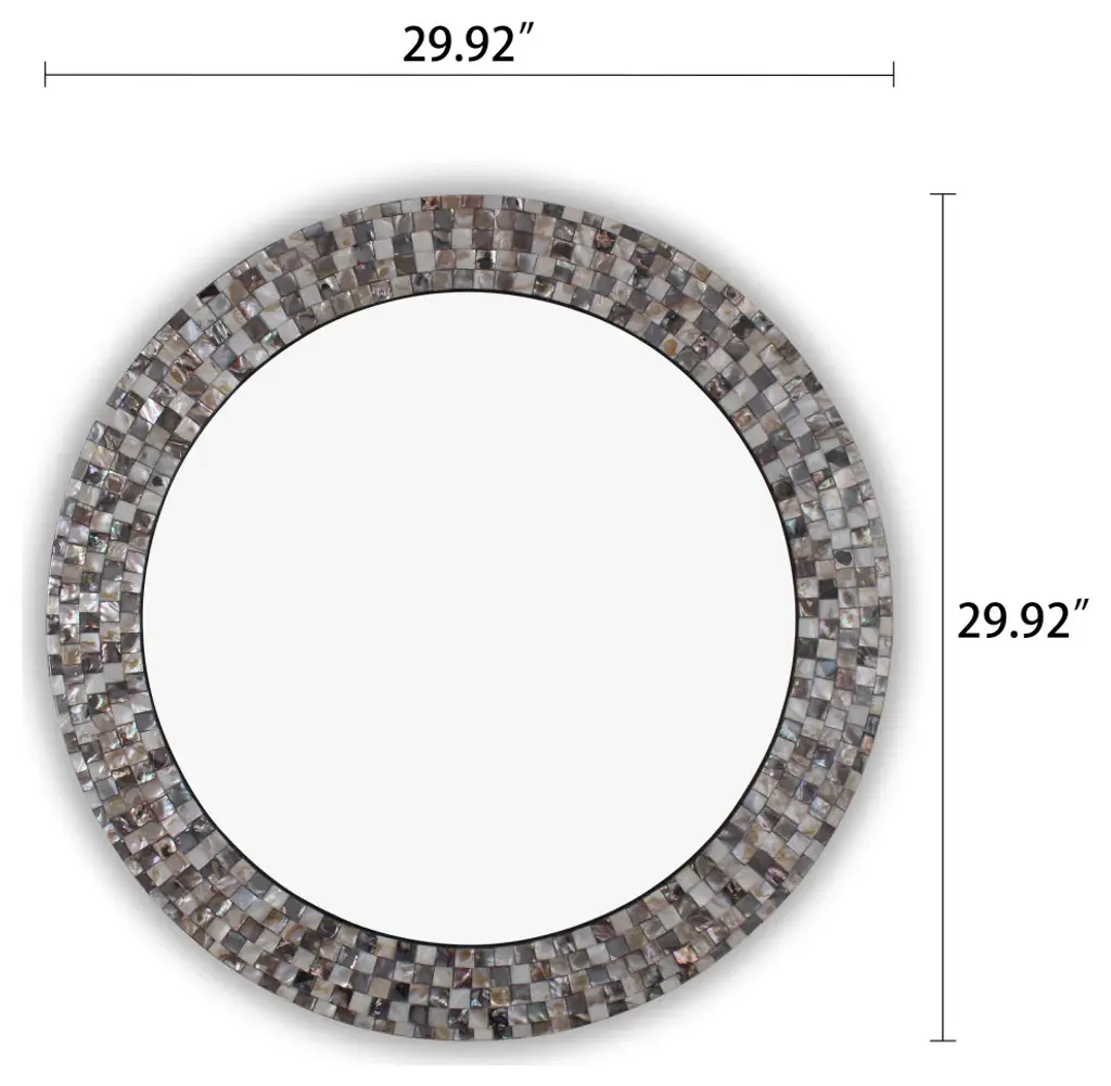 Bring the a touch of the sea to your home with this gorgeous circle seashell mirror. The frame of the mirror is made up of over 565 pieces of genuine seashell, all hand cut and hand placed. This piece would fit in beautifully in practically any room in your house, including the hallway! Due to the frame being completely handcrafted, exact size to the nearest inch and color of each seashell piece may vary. This mirror hangs horizontally.Product Feature :- 569pcs of seashells, Vertical, Indoor Setting