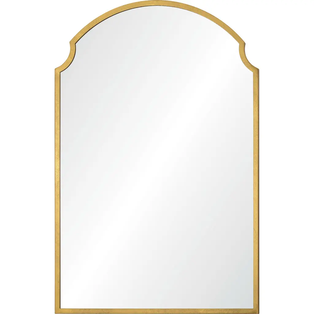 Regal radiance takes focus in this mirror design. The marriage of its romantic structure and the gold leaf finished iron creates a compelling combination fit for the classic or mid-century modern interior. At 36 inches in height and 24 in width, it fills a space without becoming overwhelming.