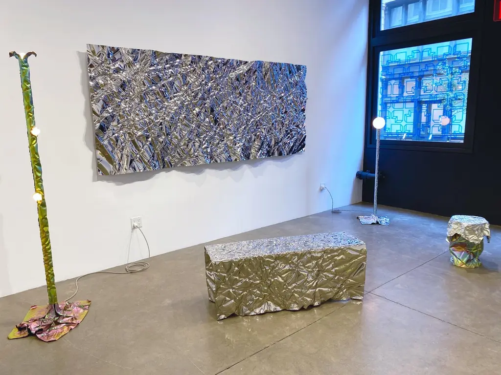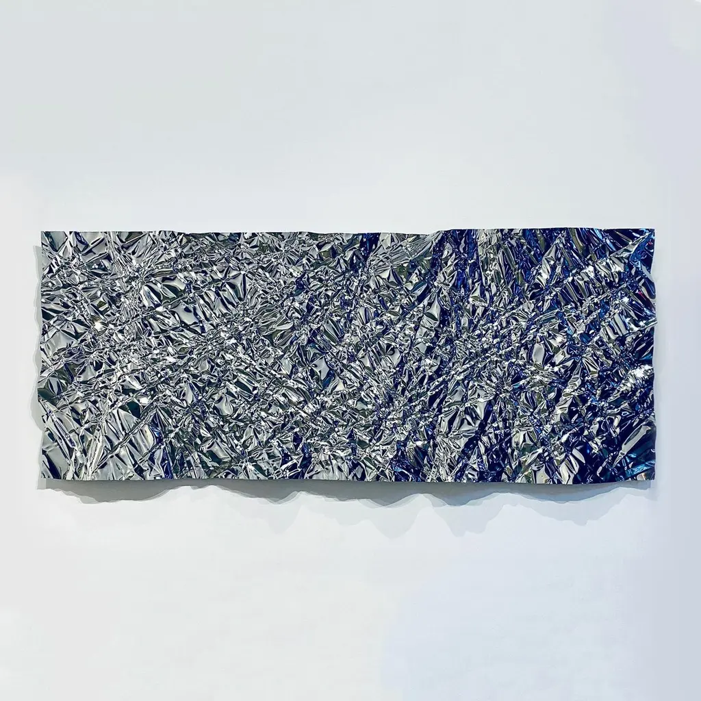 Large-size wrinkled steel wall-mounted panel by Omaha-based designer Christopher Prinz, who achieves this unusual texture by repeatedly creasing a thin sheet of steel, resulting in a strong, rigid, and unique form.The pictured mirror-polished edition is currently produced and available for purchase. Additional made-to-order editions in the raw finishes have a lead time of 6-8 weeks/are priced at $12500 and made-to-order polished editions have a lead time of 6-12 weeks/are priced at $14500 due to the more labor-intensive plating process that they require.CHRISTOPHER PRINZ is an Omaha-based designer seeking to expose extreme and rarely-visible possibilities of materials associated with manufacturing. His works are shaped using a repetitive, large-scale steel creasing technique, and finished with different combinations of electro-plated metals. Through this process, the material becomes terrain-like, bringing an expressiveness to these otherwise fairly mute industrial materials.Prinz received a BFA in Industrial Design from the Rhode Island School of Design in 2014.