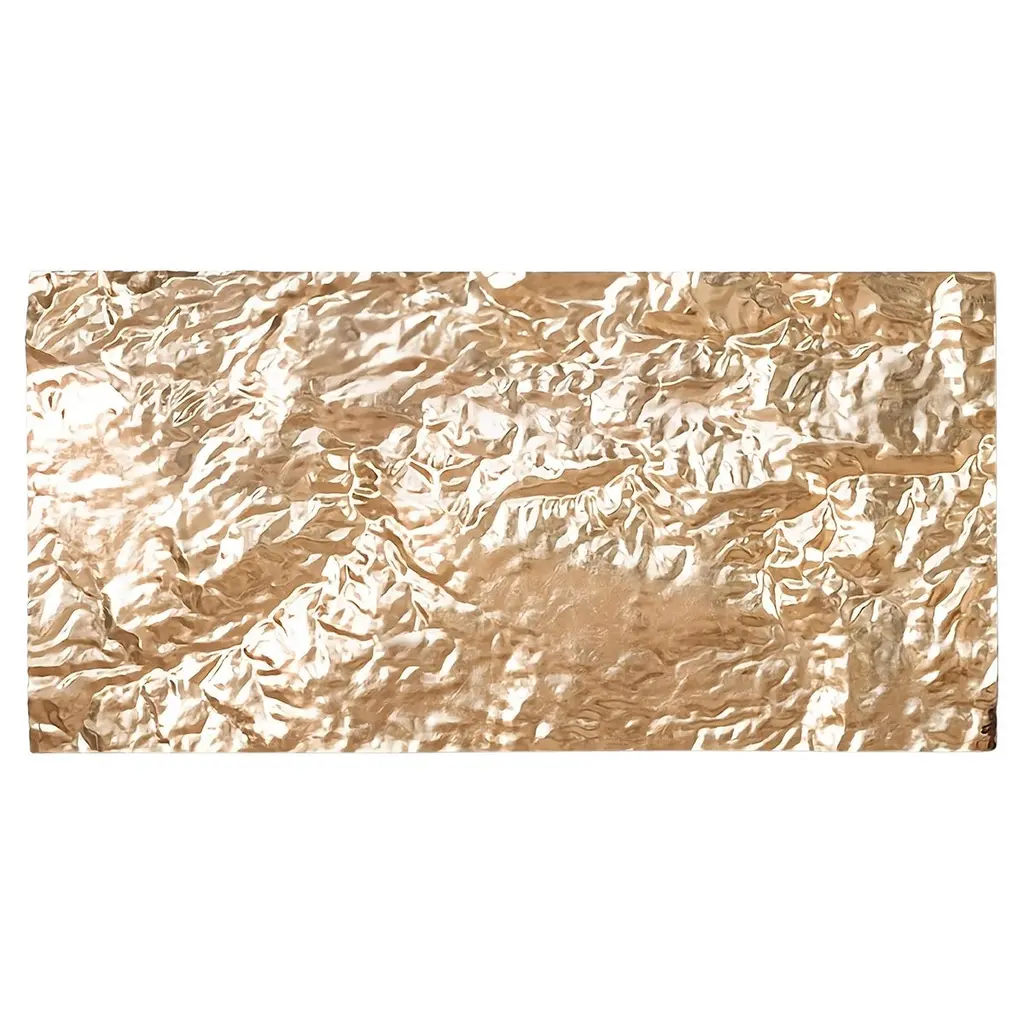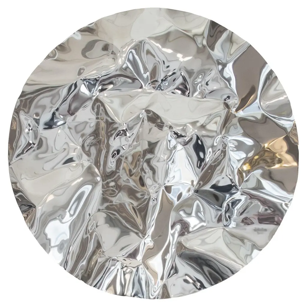 Wrinkled steel bench with a mirror-polished finish by Omaha-based designer Christopher Prinz, who achieves this unusual texture by repeatedly creasing a thin sheet of steel, resulting in a strong, rigid, and unique form. Hidden leveling feet protect surfaces and ensure balance.Made to order in 6-8 weeks. Easily customizable and available in a range of both raw and polished finishes. Please note that pieces with polished finishes are priced higher due to the more laborious plating process that they require. Benches in the raw finishes are priced at $7500 and benches in the polished finishes are priced at $9500.CHRISTOPHER PRINZ is an Omaha-based designer seeking to expose extreme and rarely-visible possibilities of materials associated with manufacturing. His works are shaped using a repetitive, large-scale steel creasing technique, and finished with different combinations of electro-plated metals. Through this process, the material becomes terrain-like, bringing an expressiveness to these otherwise fairly mute industrial materials.Prinz received a BFA in Industrial Design from the Rhode Island School of Design in 2014.