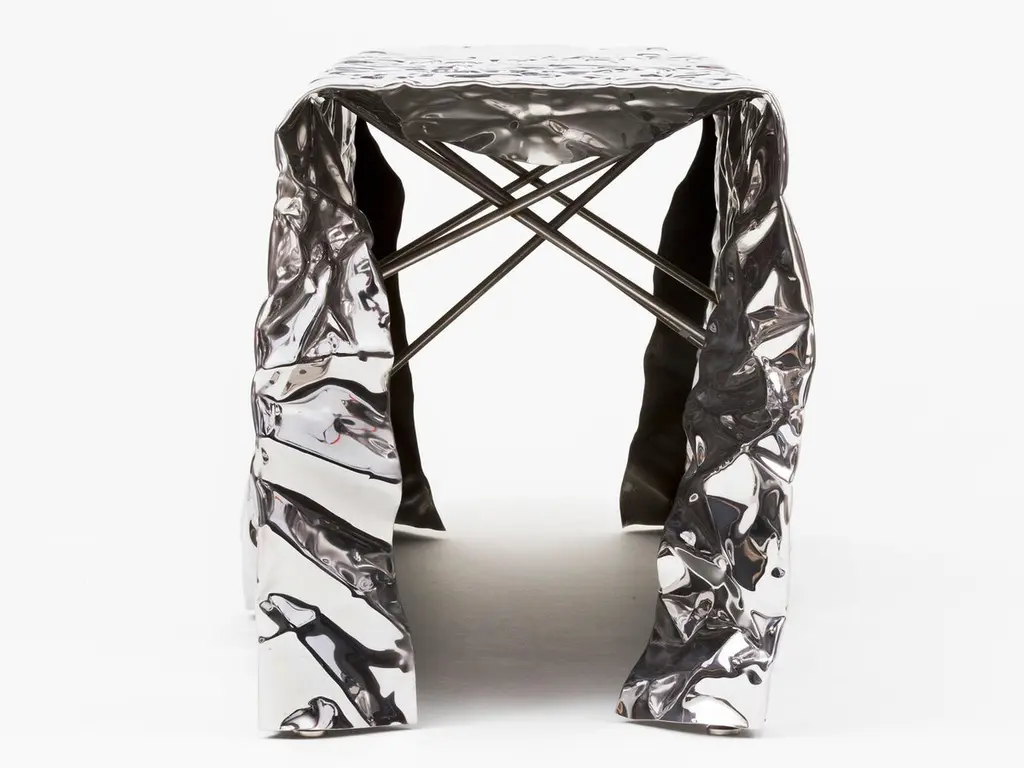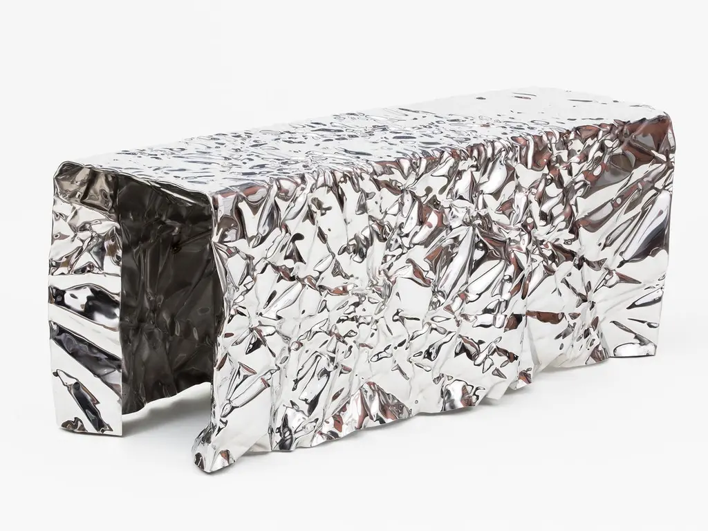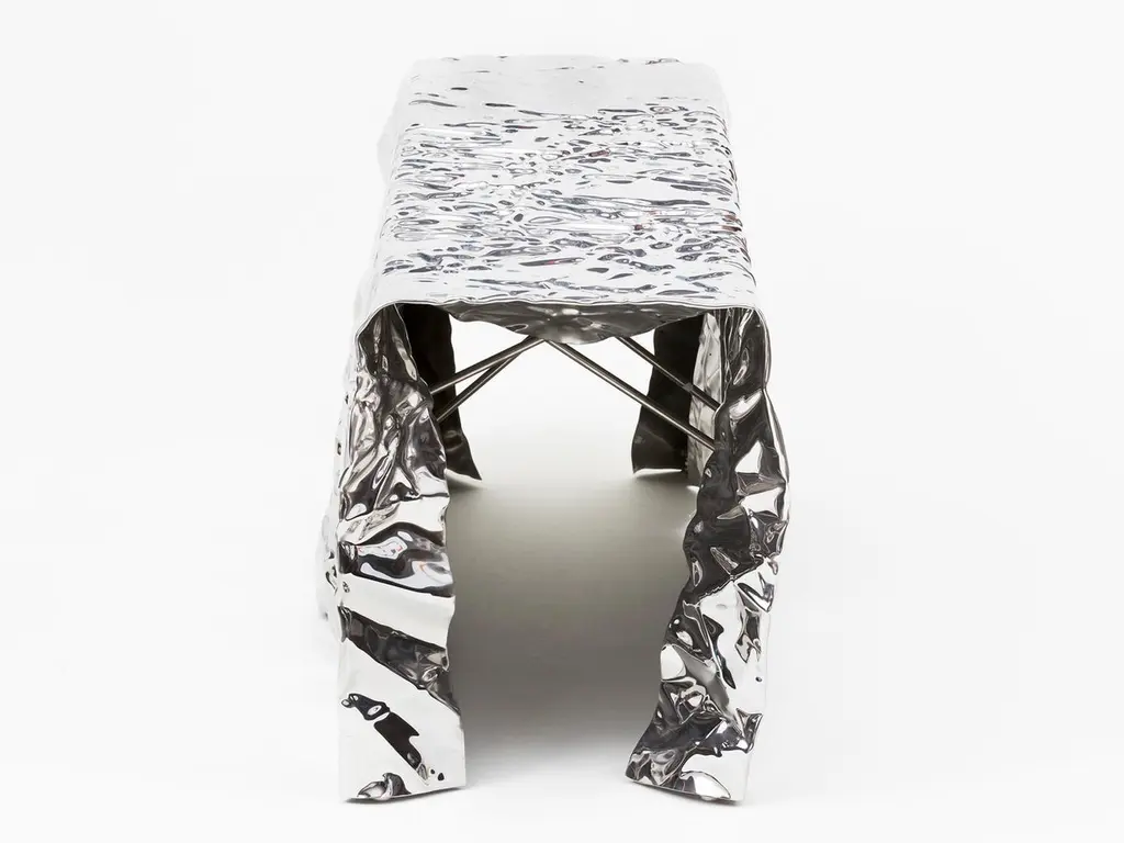 Christopher Prinz "Wrinkled Steel Bench" In Mirror-Polished Finish