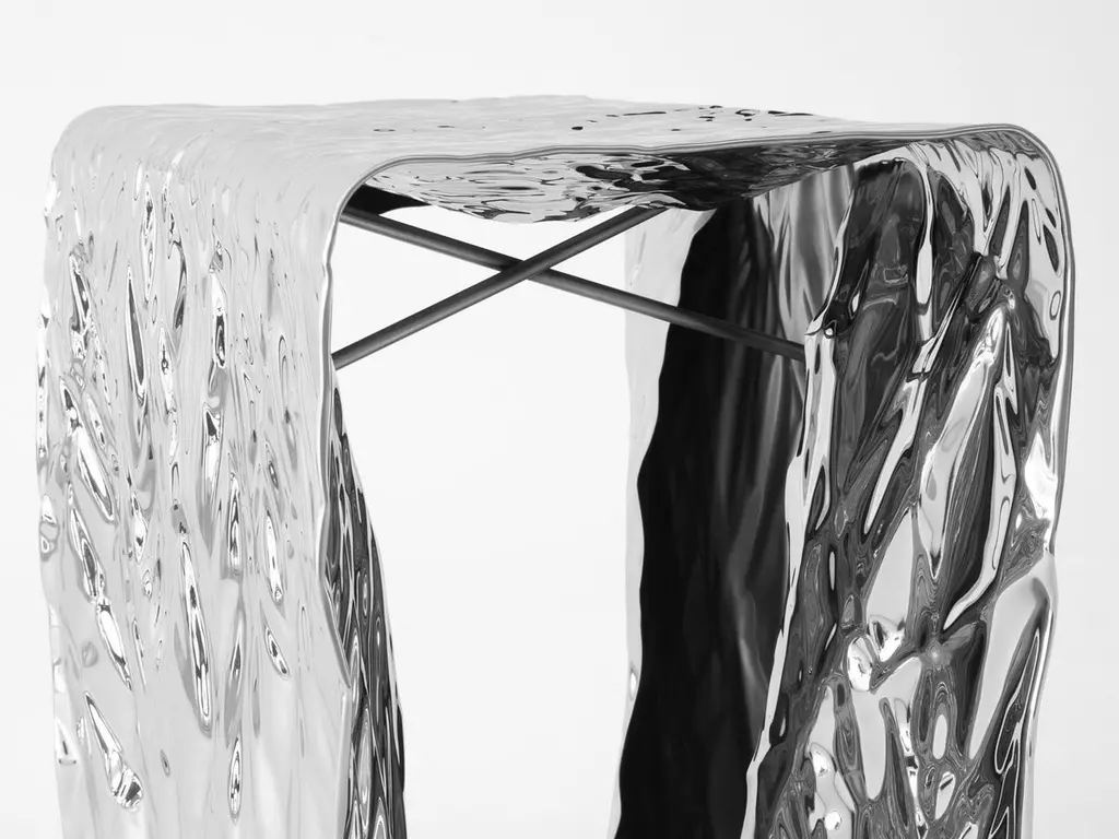Christopher Prinz "Wrinkled Stool" In Mirror-Polished Finish