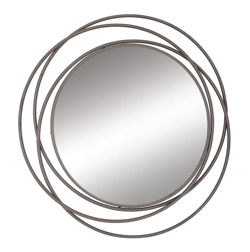 Join the inner circle. The seductive silhouette of this black wrought iron four-ring mirror is masterfully hand forged to give any room a chic instant update. Dust with a soft, dry cloth. Do not use abrasive cleaner. To clean mirror, spray a small amount of glass cleaner onto a lint-free cloth and wipe mirror clean.