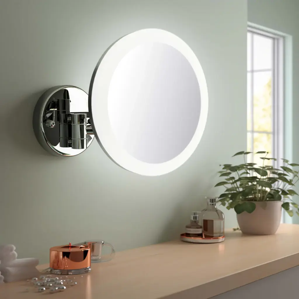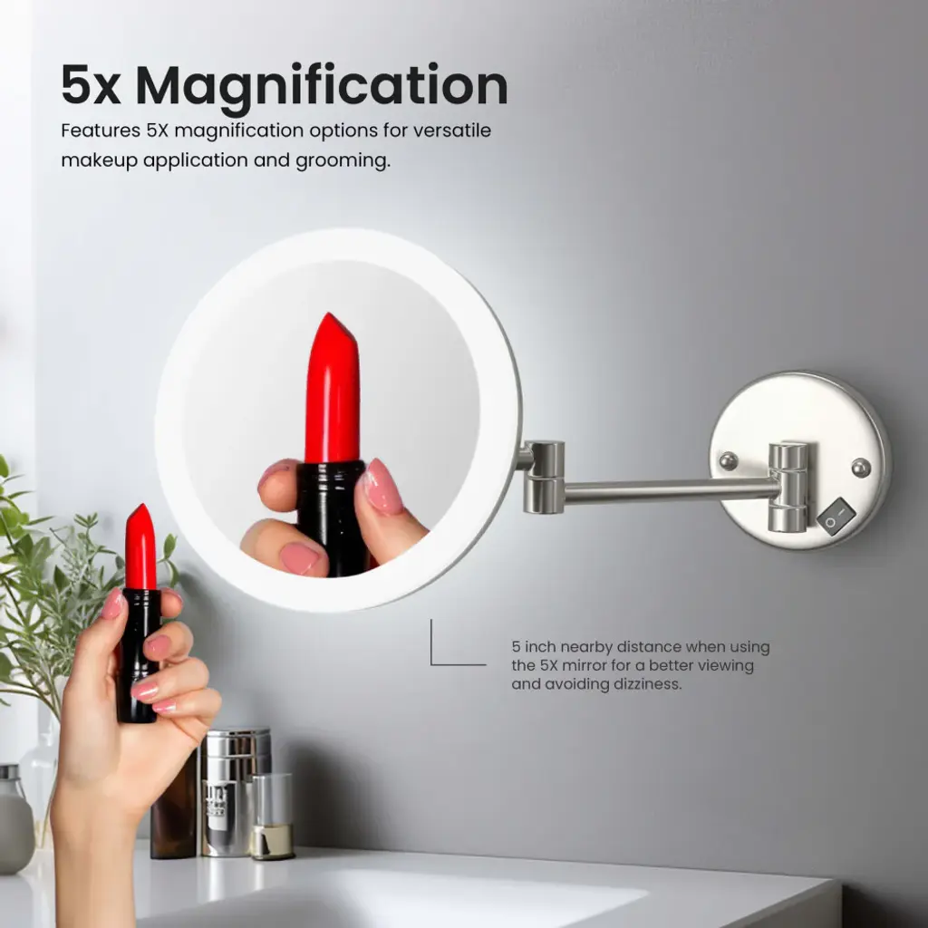 Circular Led Wall Mount One Side 5X Magnifying Make Up Mirror, Chrome