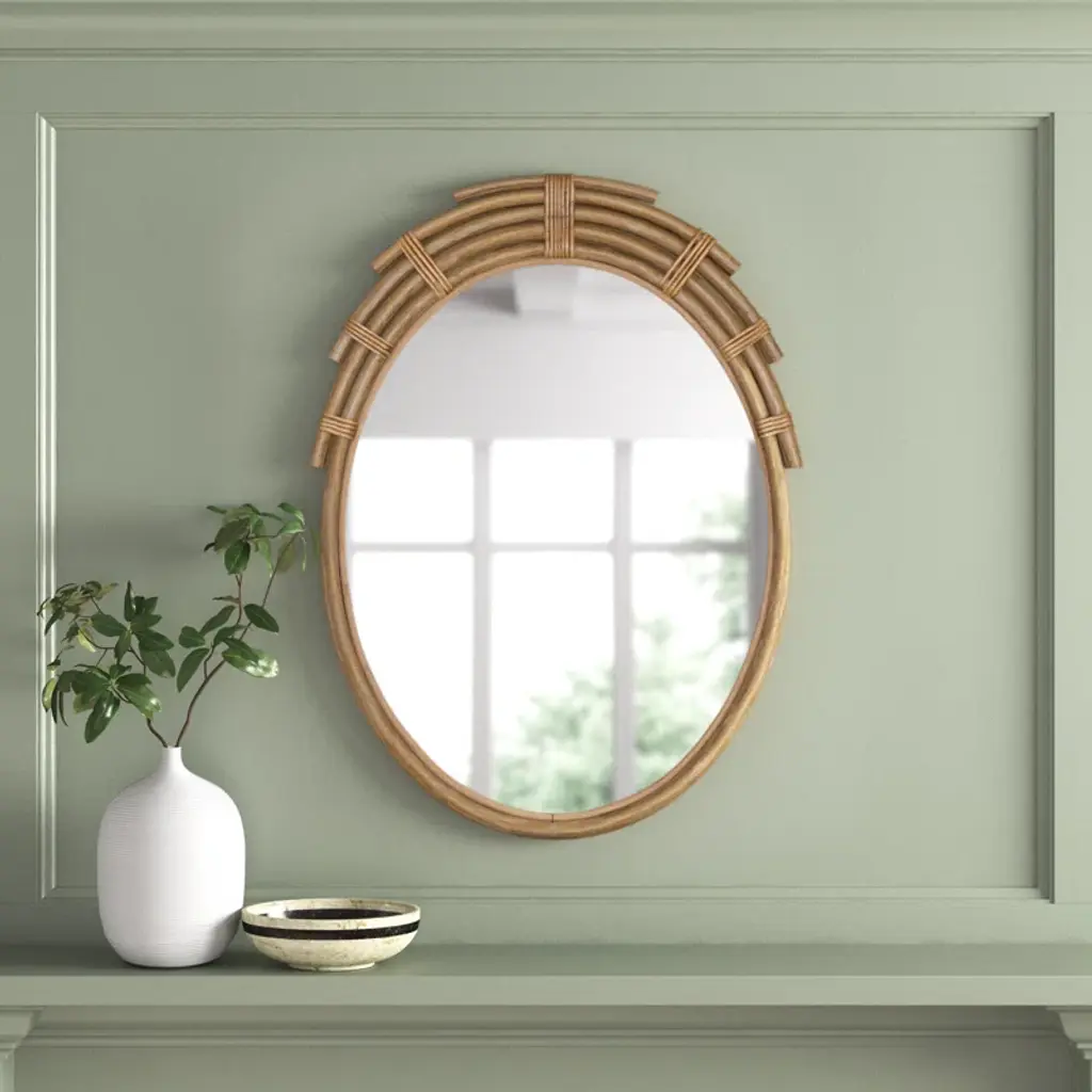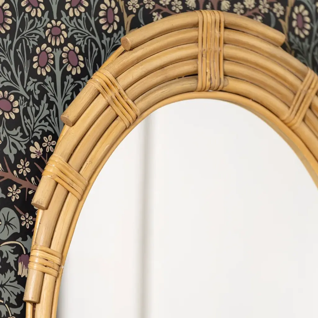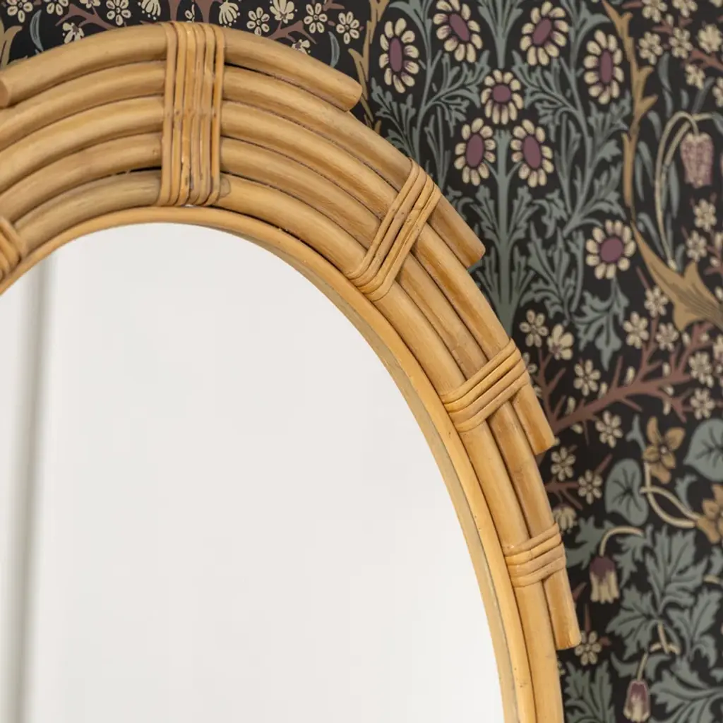 Say hello to your new favorite statement piece - this rattan-framed wall mirror. Crafted from glass with a flat surface, this mirror is ready to make a bold impression in any space. Its natural woven frame adds an earthy, boho touch to your decor, perfect for those who appreciate unique, artisanal style. Plus, its versatile design is suited for damp, dry and wet locations, allowing you to place it anywhere in your home for an instant uplift. Time to reflect on your impeccable taste.