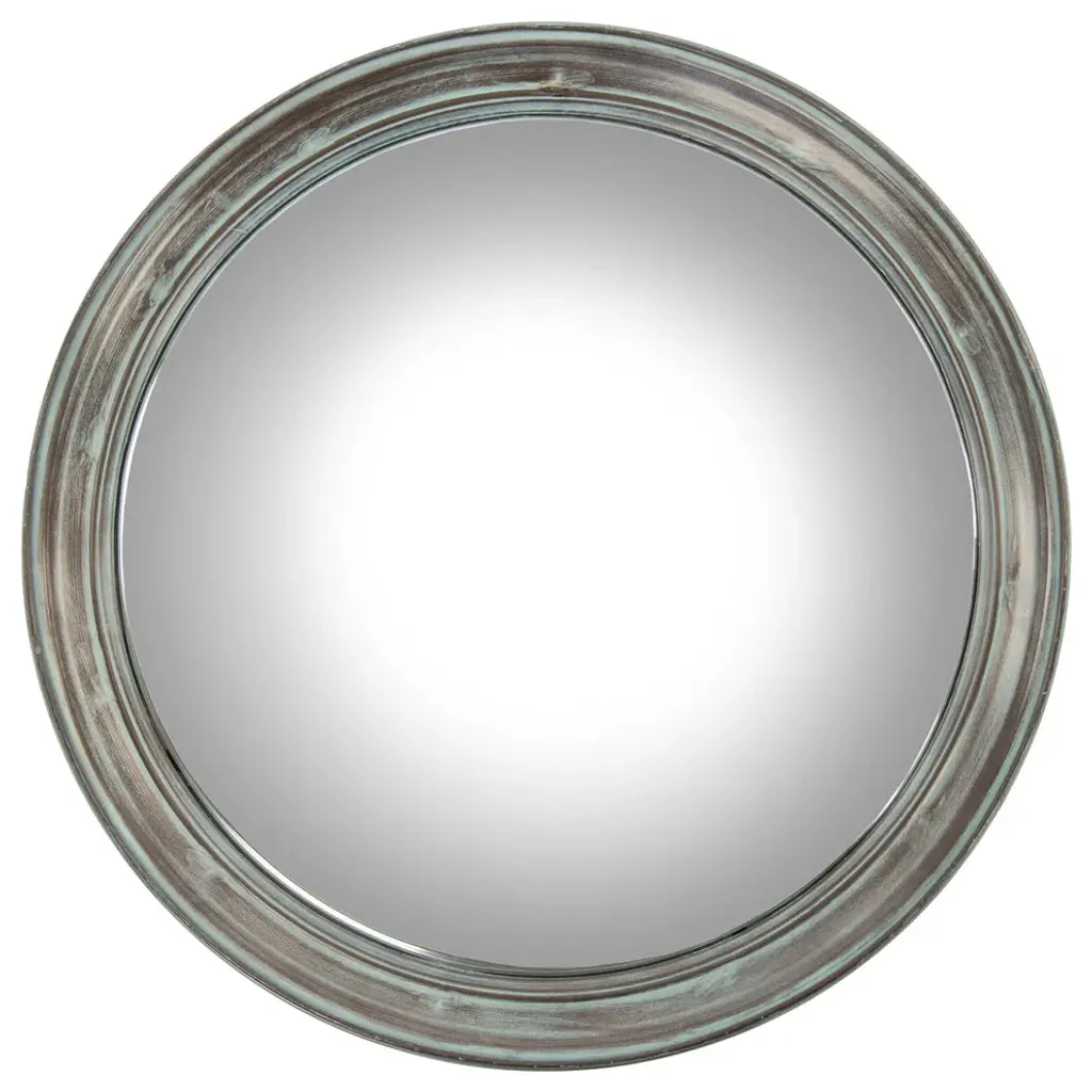 Decorate a bare wall space with the elegant Claire Mirror. This round convex mirror has an iron frame with a weathered green finish. Display it in a traditional-style home as an understated yet sophisticated accent piece.