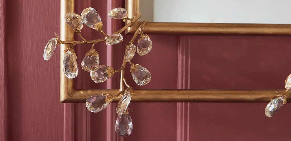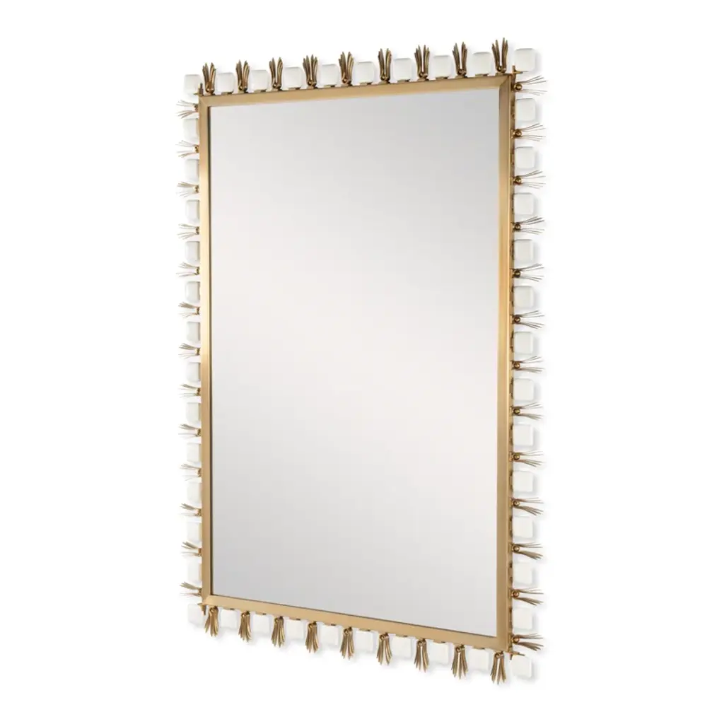 Inspired by our Clara crystal bud lighting collection, our Clara rectangular mirror is stunning from every angle. Artisan-crafted from iron, finished in antiqued brass, and adorned with sprays of sparkling crystal flower buds.