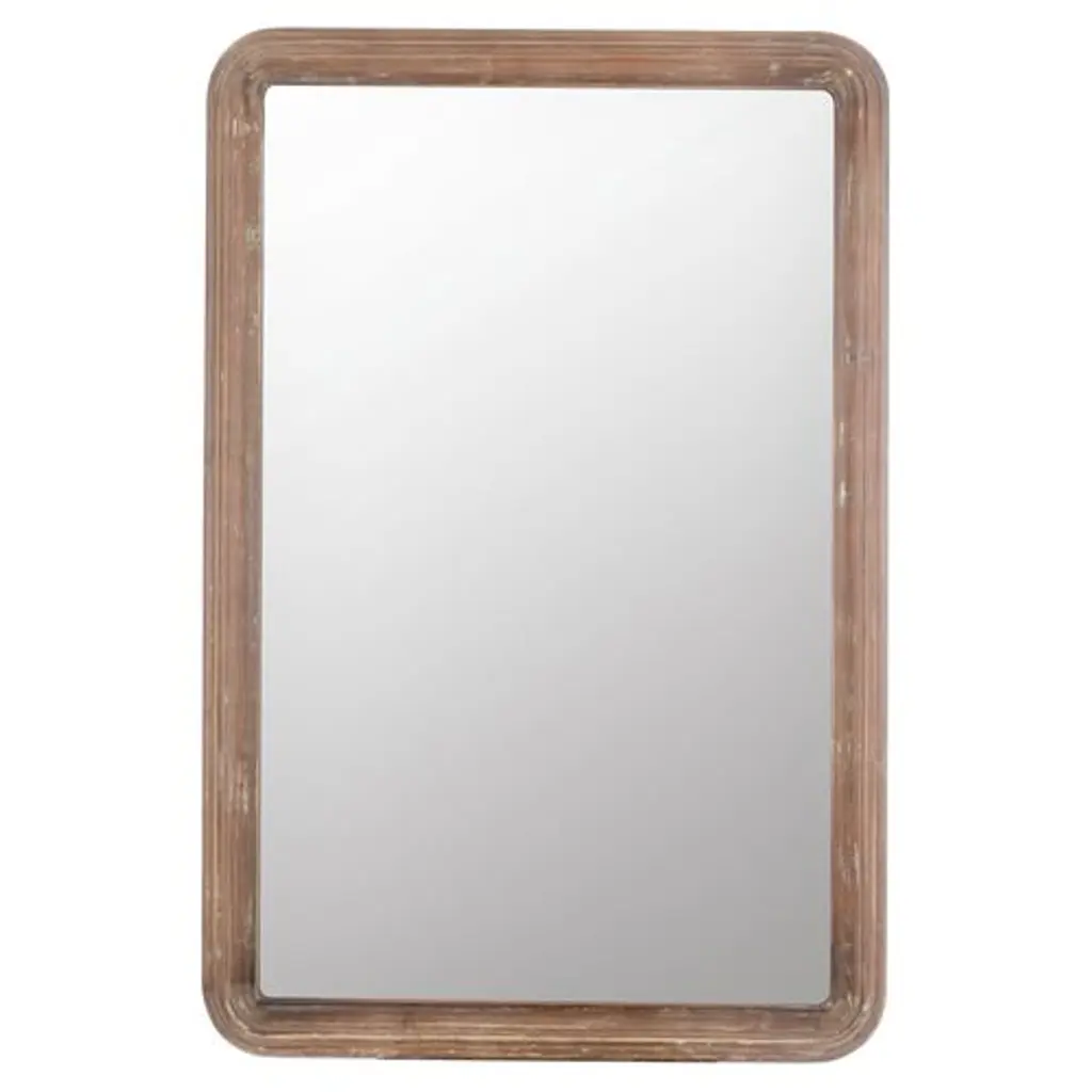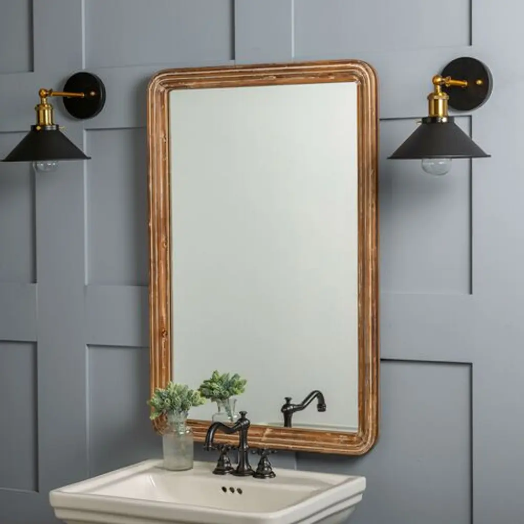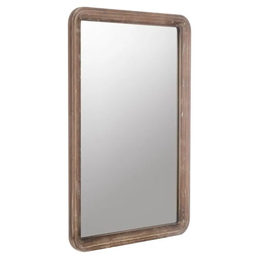 This delightfully rustic wall mirror is framed in wood with wonderful texture and a natural brown finish. Hangs horizontally and vertically.